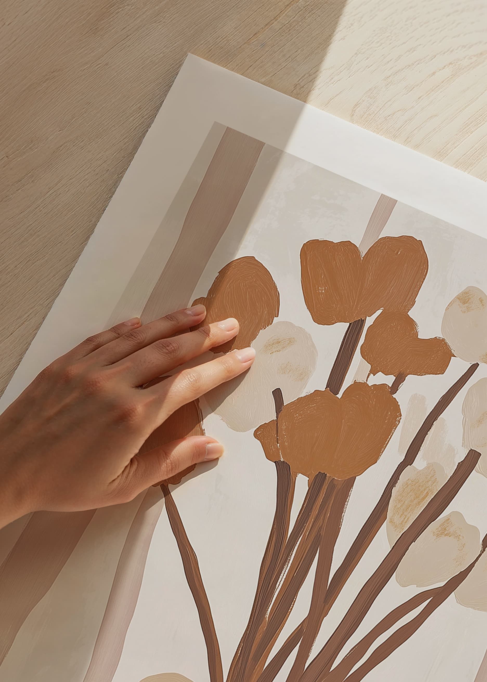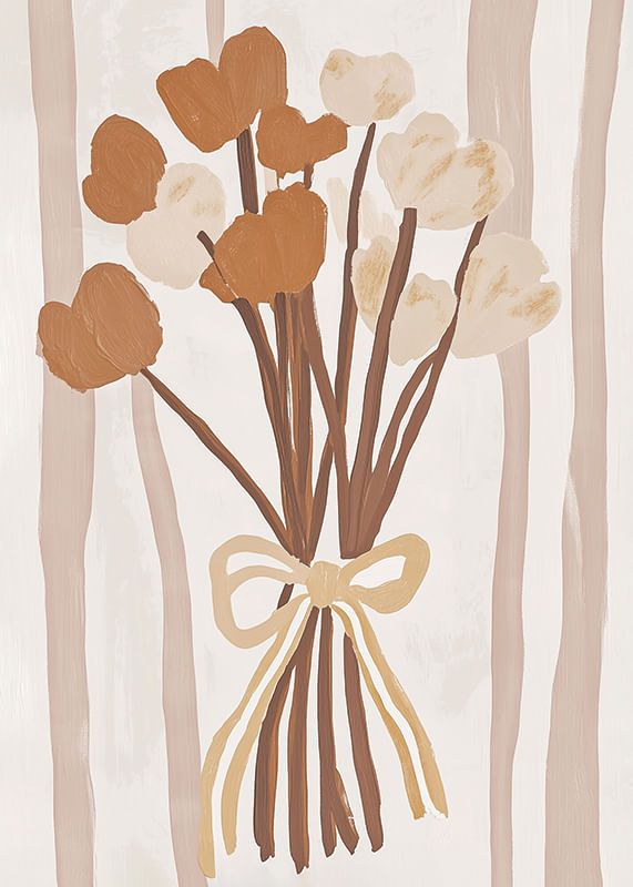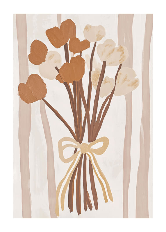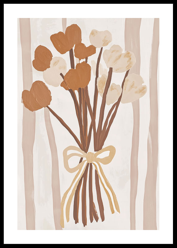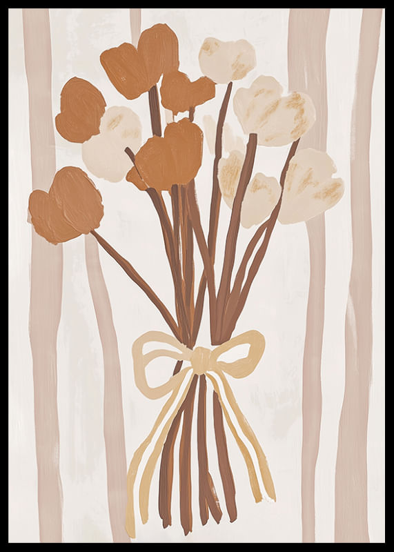 Denna poster fångar ögonen med sina bruna och beige toner som bildar en stilren och jordnära bukett. De mjuka färgerna och linjerna ger en känsla av ro och sofistikation, vilket gör att postern passar perfekt i ett modernt vardagsrum eller sovrum.