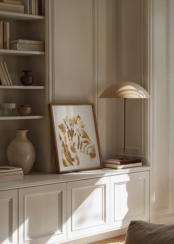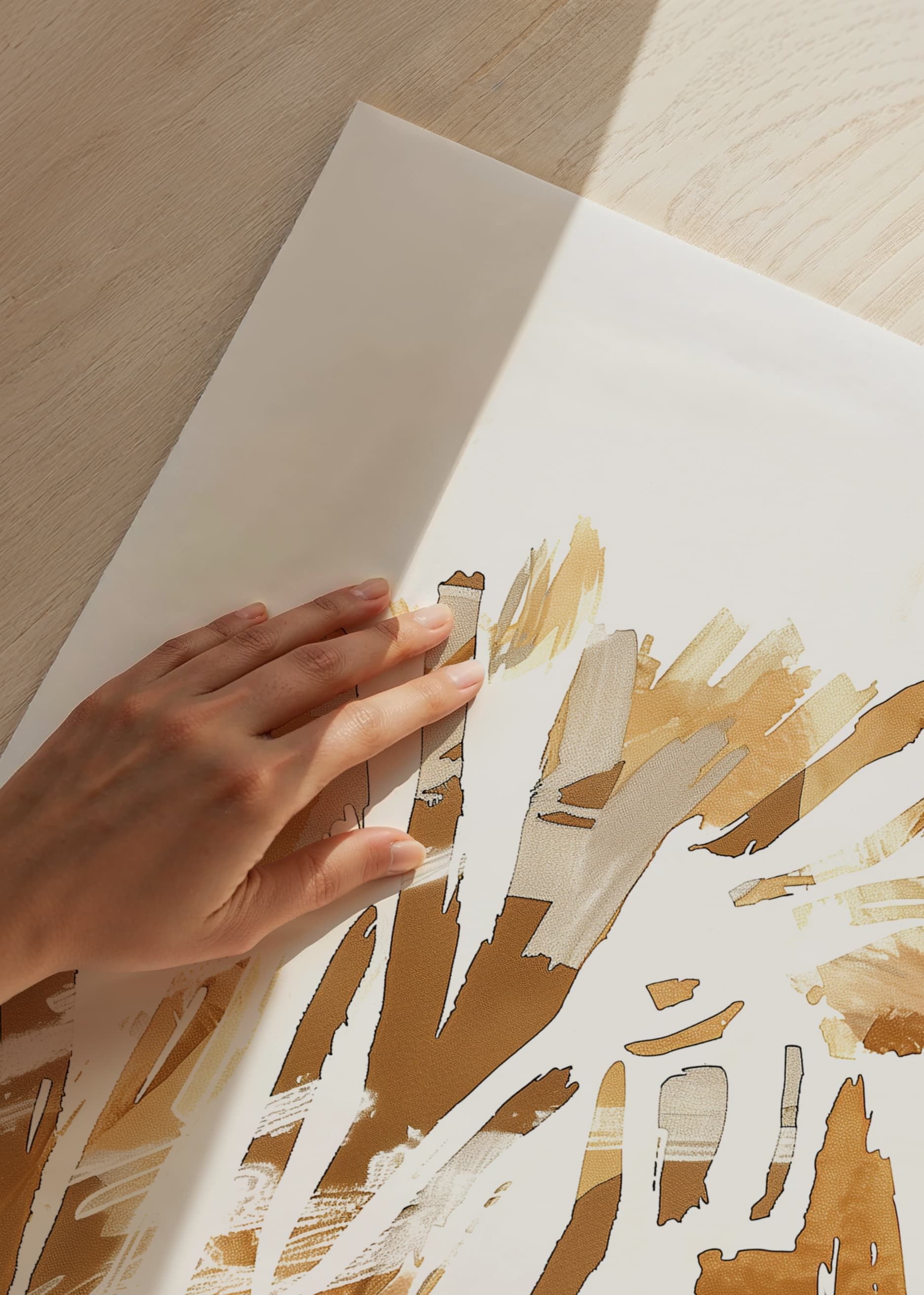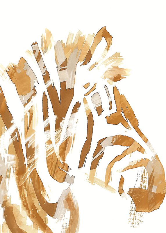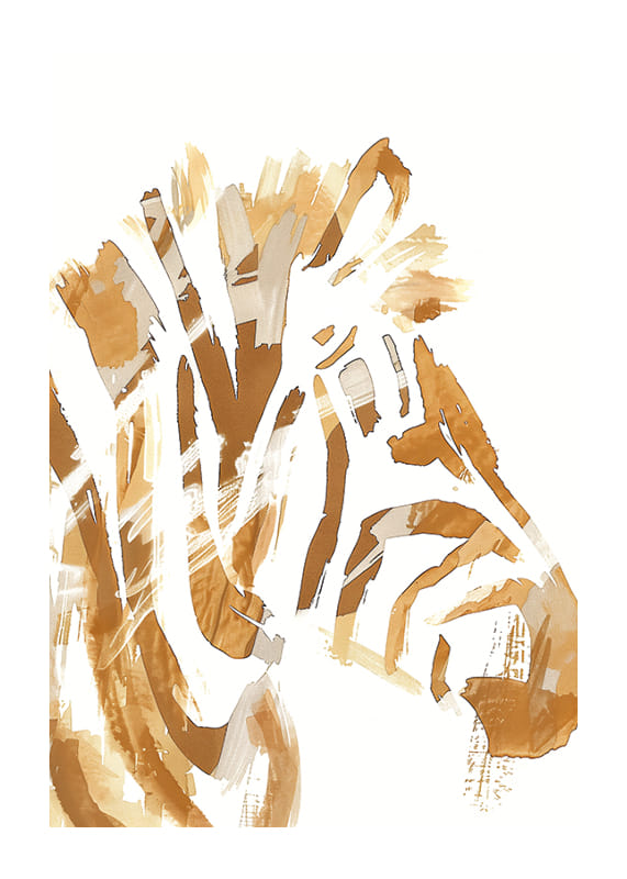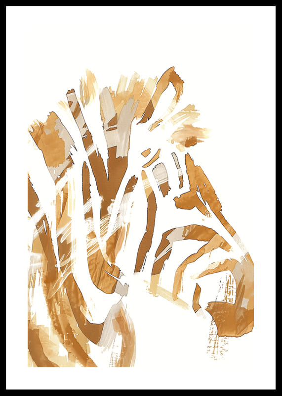 Denna poster fångar ögat med sin eleganta tolkning av en hästs man i jordnära bronsfärger. De svepande penseldragen skapar en känsla av rörelse och frihet, vilket ger liv åt rummet den pryder.