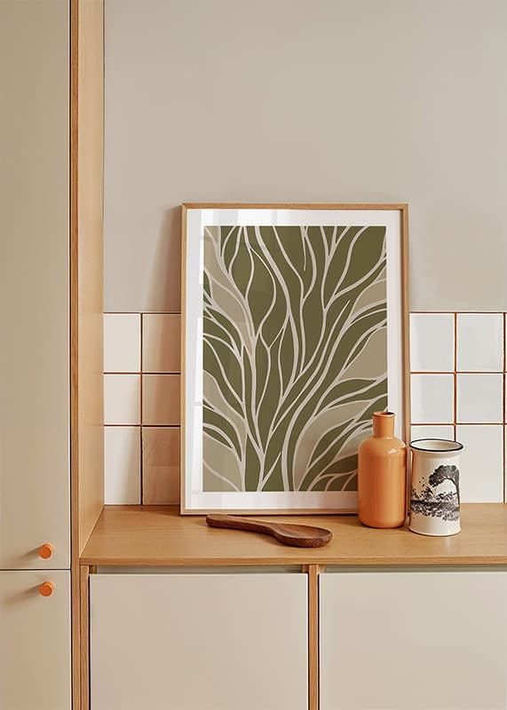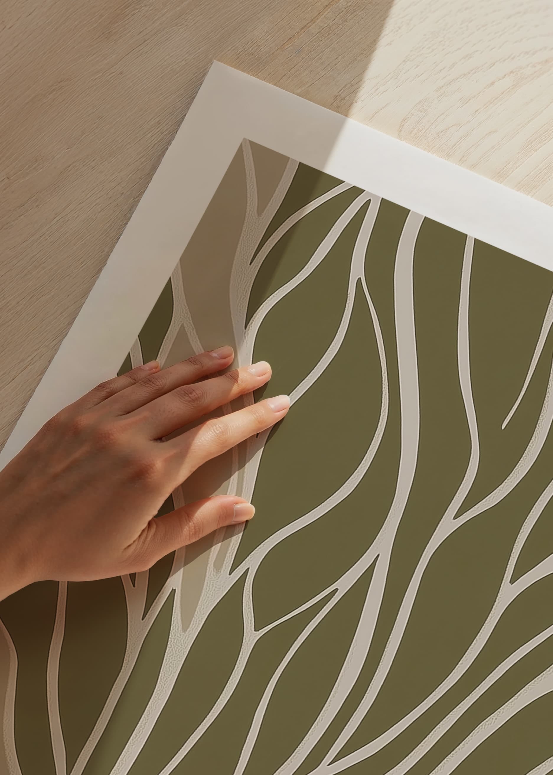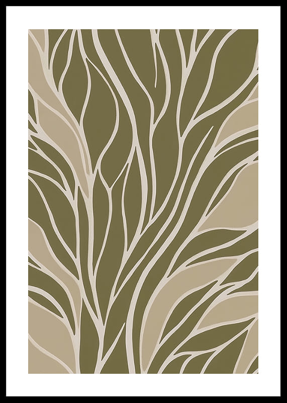 Låt dig svepas in av naturens mjuka kurvor med denna vackra poster som fångar essensen av ett lövverk. De grönaktiga tonerna skapar en fridfull atmosfär som för tankarna till skogens lugn.
