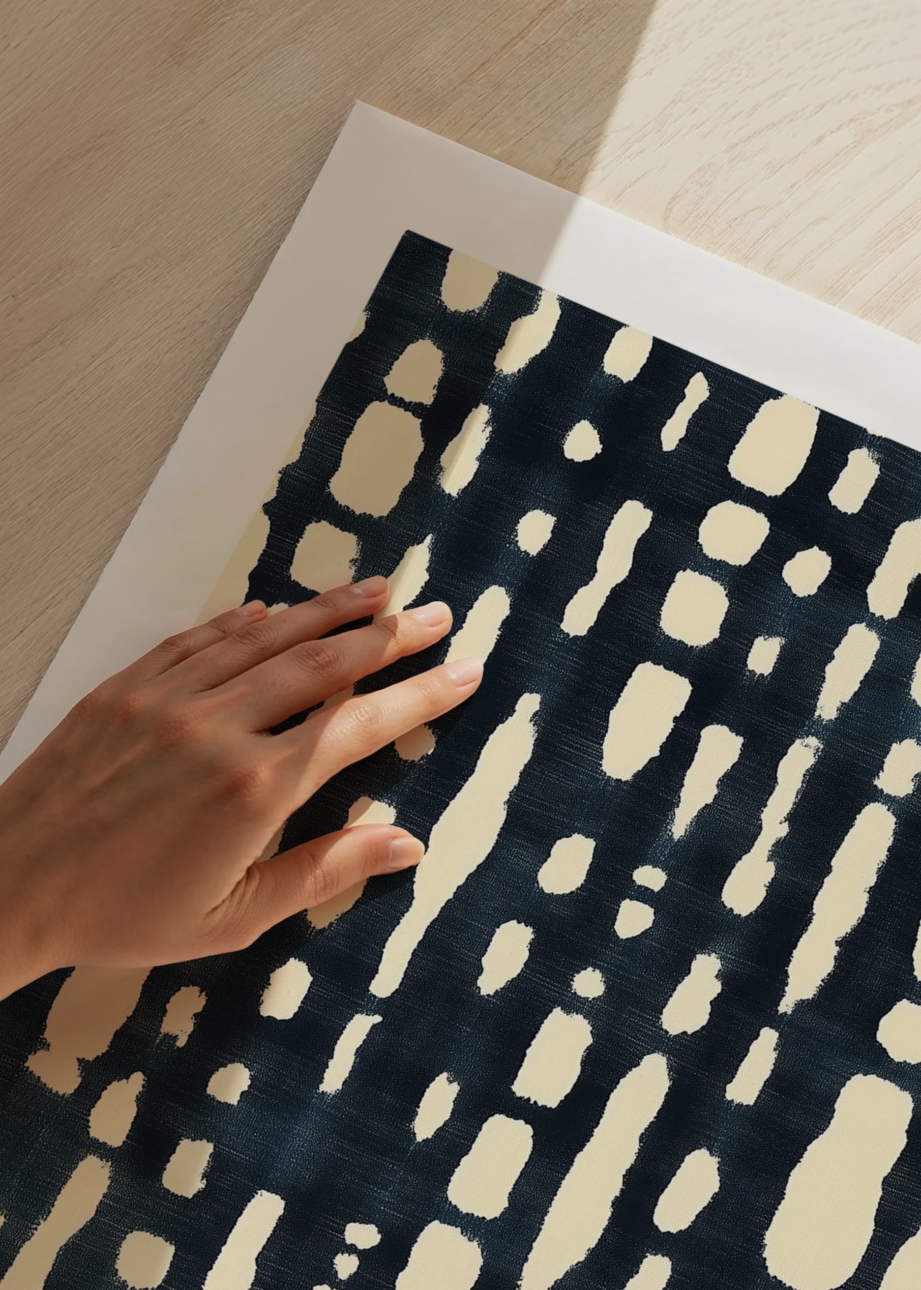 Den här postern utstrålar en modern och stilren känsla med sitt svartvita, abstrakta mönster. De organiska formerna i kontrasterande toner skapar en djupnande rytm som lockar blicken och tillför ett sofistikerat element till rummet.