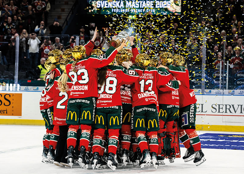 Frölundas spelare jublar efter final tre i SDHL mellan Frölunda och Luleå den 16 mars 2025 i Göteborg.