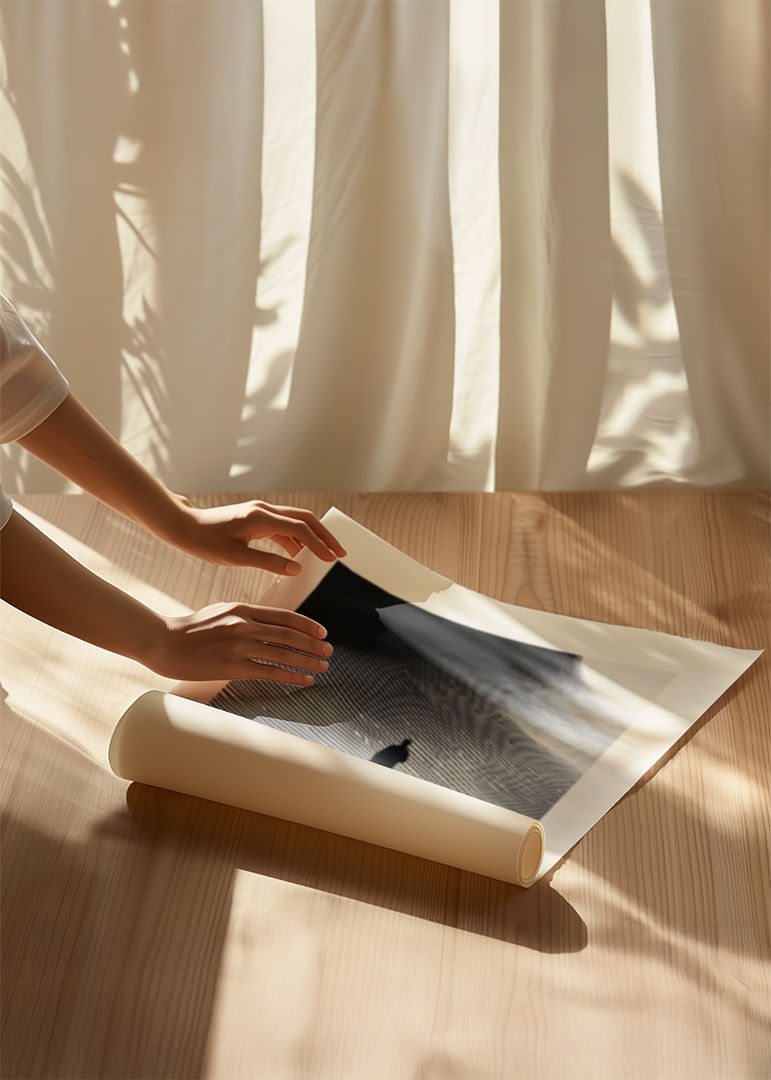 Vi trycker våra posters på 200 grams matt papper av högsta kvalitet från det franska pappersbruket Clairefontaine. Pappret är miljöcertifierat FSC och produktionen Svanen/EU Ecolabel-märkt.