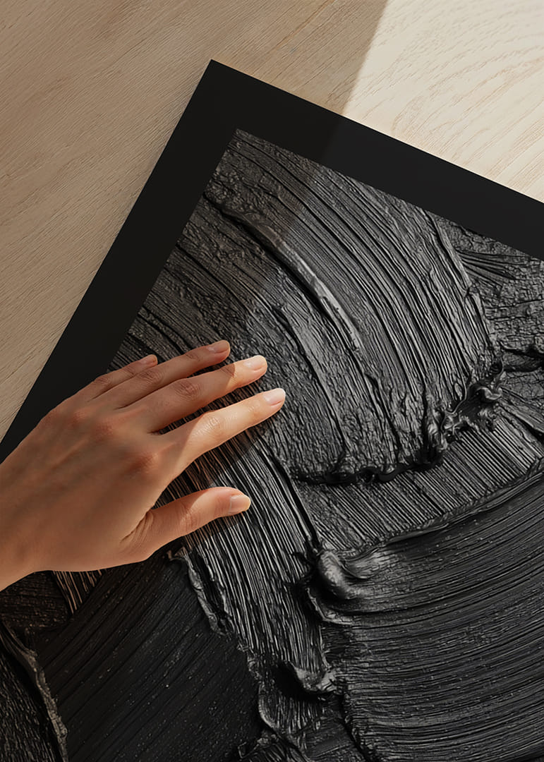 Denna poster fångar omedelbart med sin intensitet, med sina djupa, svarta stråk som skapats i ett dynamiskt virvlande mönster. Den grova ytan och de flytande linjerna ger ett dramatiskt uttryck och en känsla av evig rörelse. Med denna poster berikar du ditt rum med mystik och sofistikation och skapar en atmosfär där konst och känsla samspelar i perfekt harmoni.