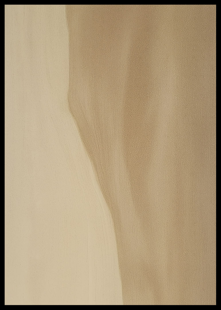 Den här postern inbjuder dig att förlora dig i öknen där mjuka sanddyner bildar ett stilleben av naturlig skönhet. Den varma, gyllene färgtonen och de böljande formerna skapar en känsla av både rörelse och stillhet. Med en lockande enkelhet förhöjer postern atmosfären i ditt hem med en subtil elegans och fridfullhet som berikar varje rum.