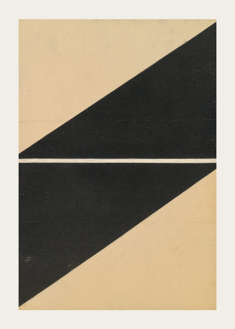 Denna poster fångar ögat med sin minimalistiska elegans och geometriska mönster. De skarpa linjerna och kontrasterna skapar en känsla av balans och stillhet som förstärker ett rum. Postern kommunicerar en tidlös skönhet och erbjuder en stilren dekoration till hemmet, vilket gör den till en perfekt mittpunkt i alla moderna boendemiljöer. Låt dess subtila charm förädla ditt utrymme.