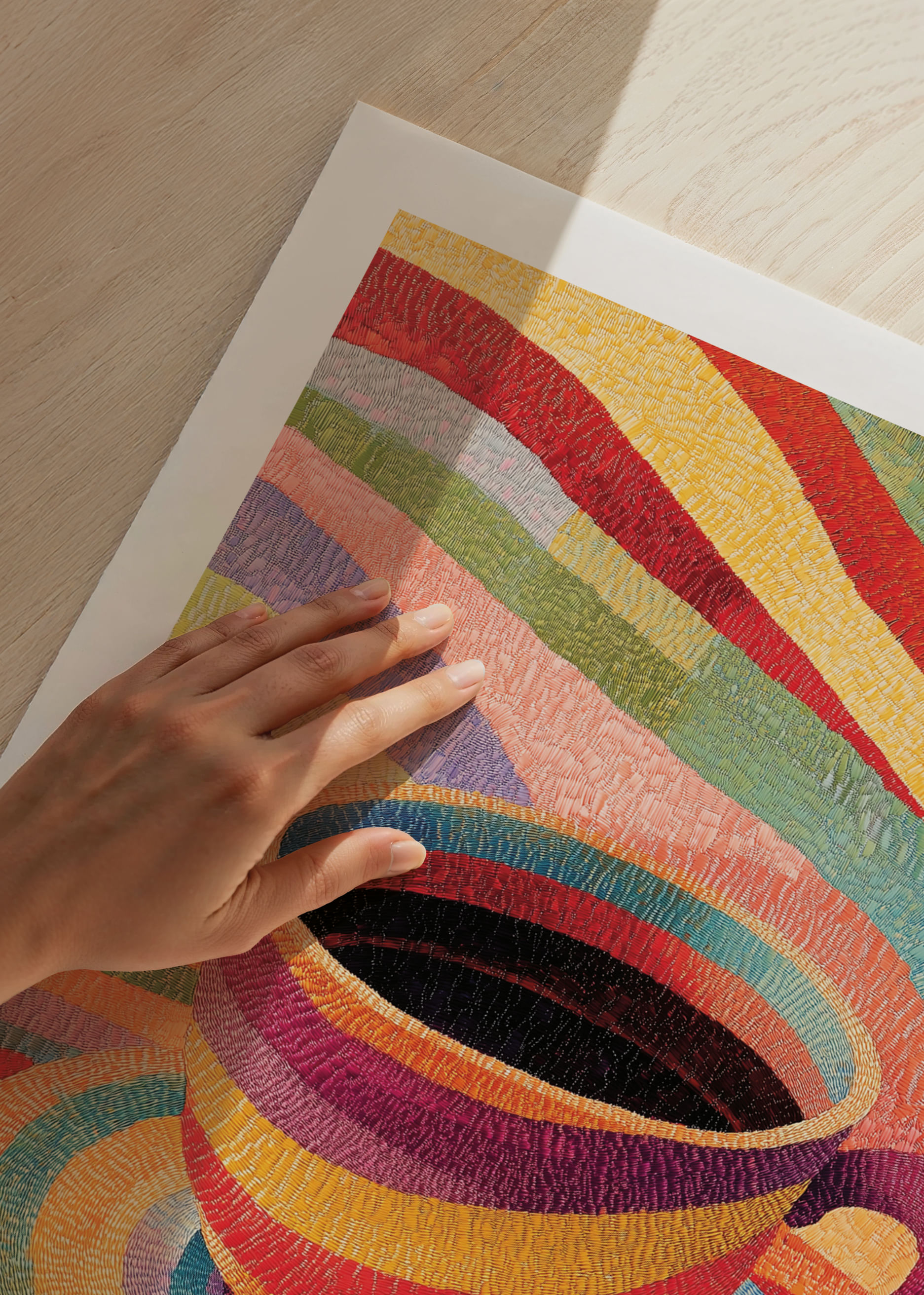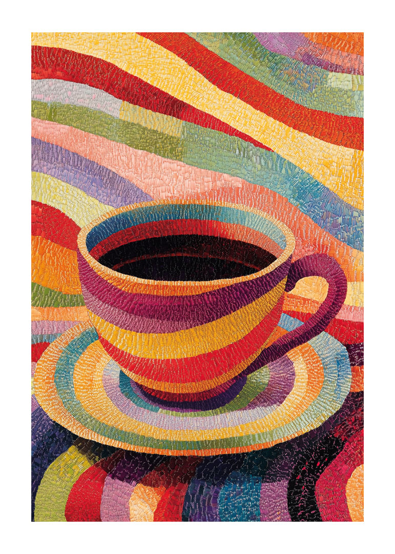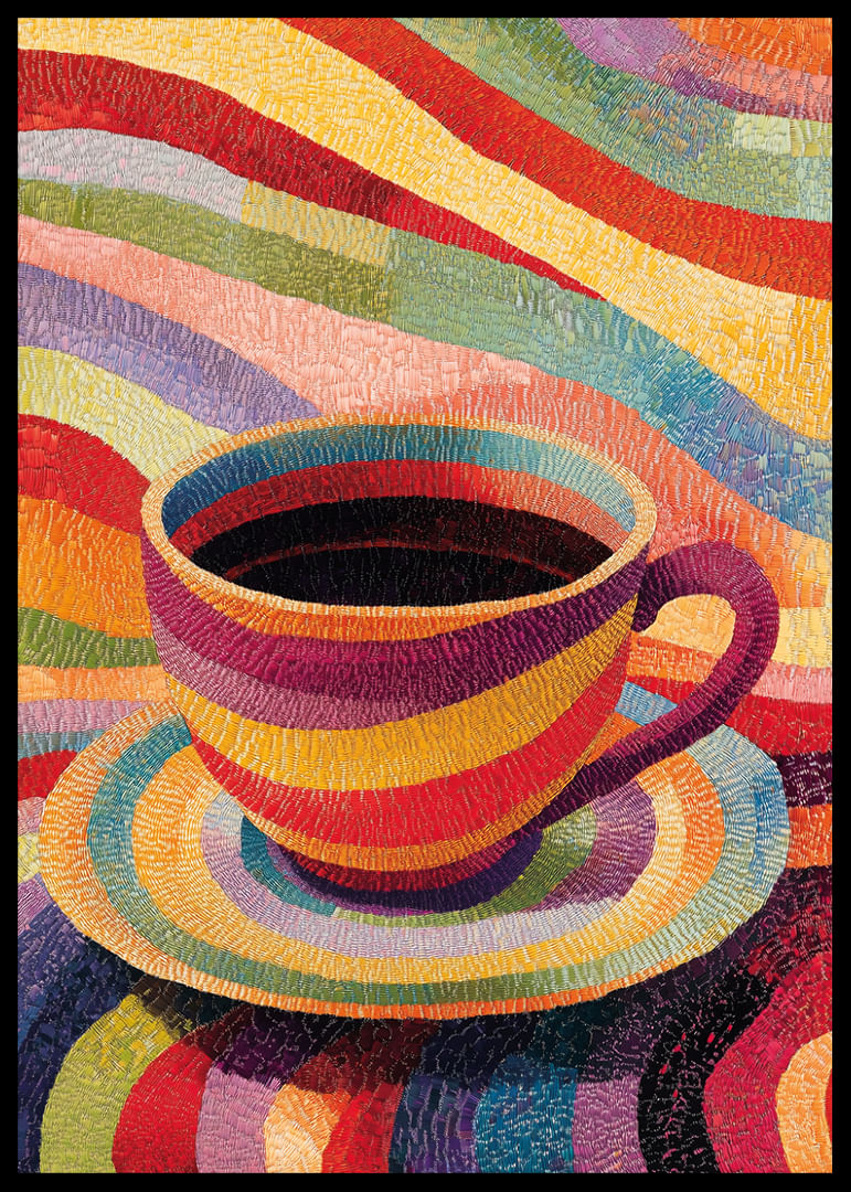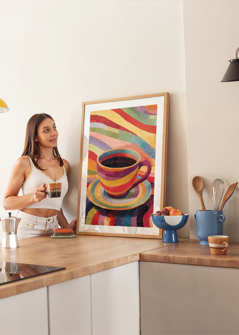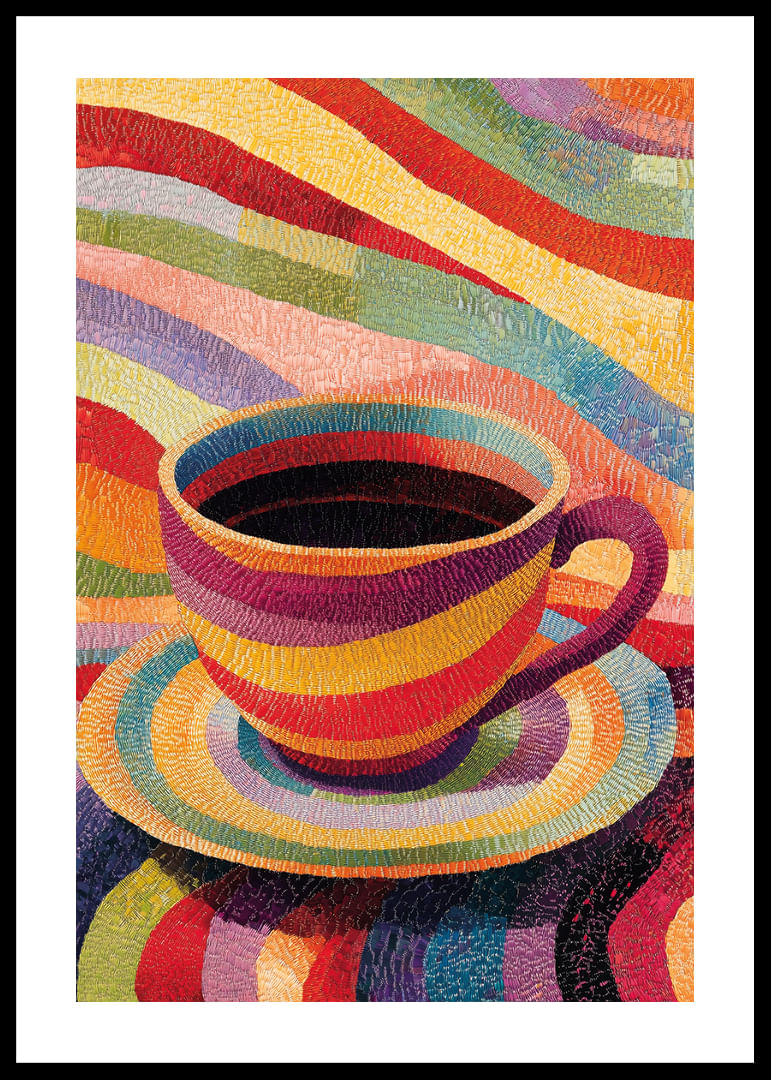 Denna poster fångar direkt uppmärksamheten med sin färgsprakande skönhet, där en kopp skapar ett magiskt spel av regnbågsfärger. Varje ton verkar dansa på papperet och inspirerar till kreativitet och glädje. Perfekt för att ge liv åt vilket rum som helst, denna poster blir en central punkt som sprider en atmosfär av energi och positivitet. Fånga stunden med denna lysande konst!