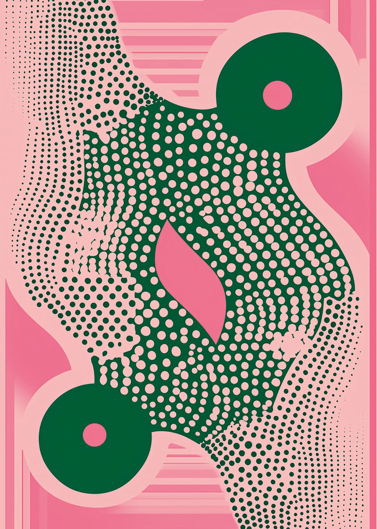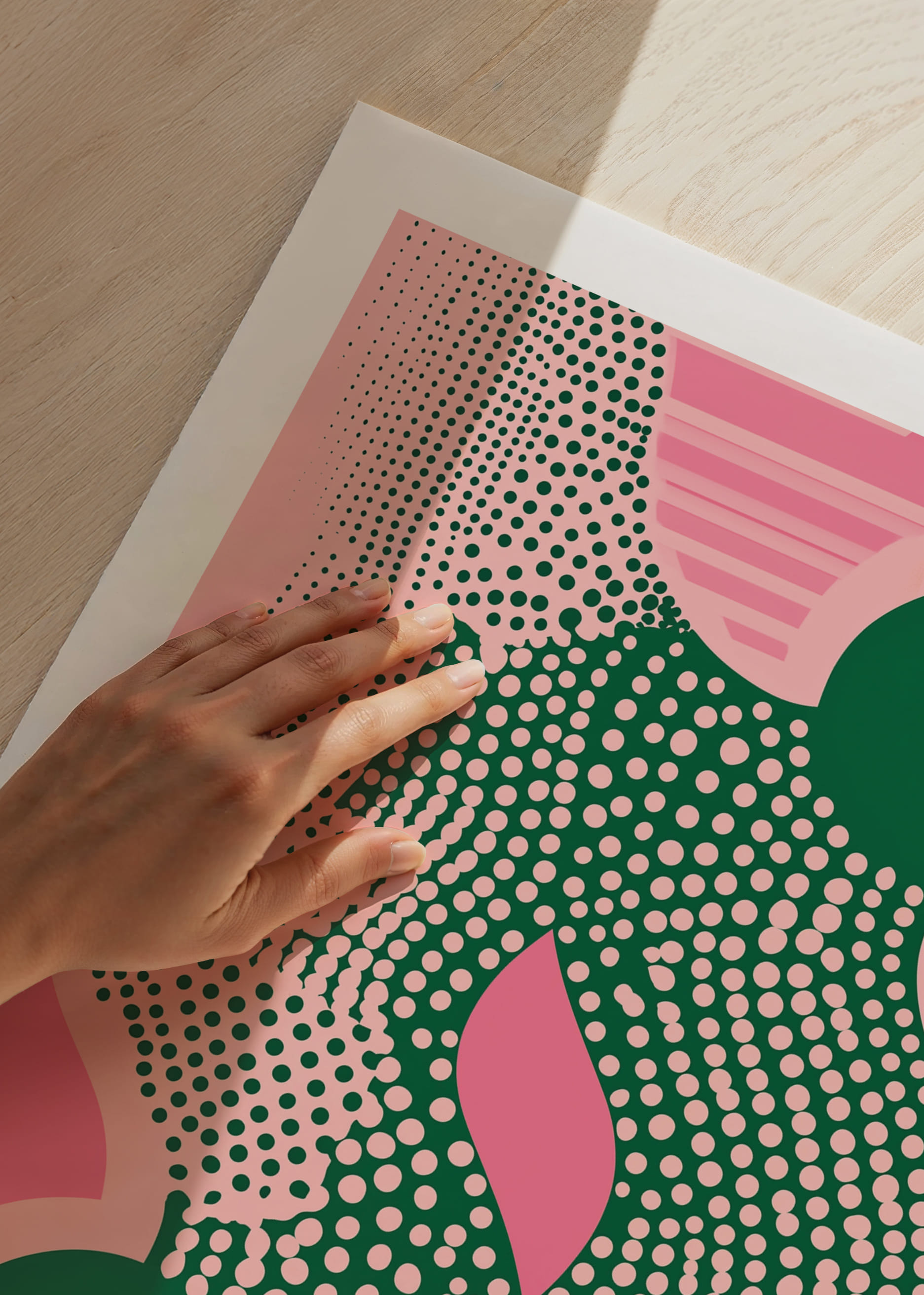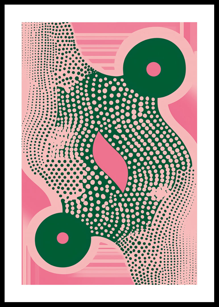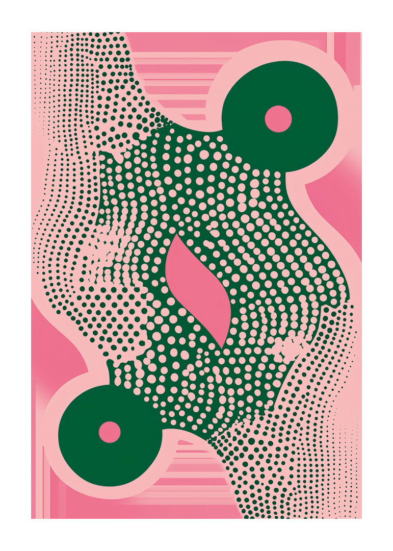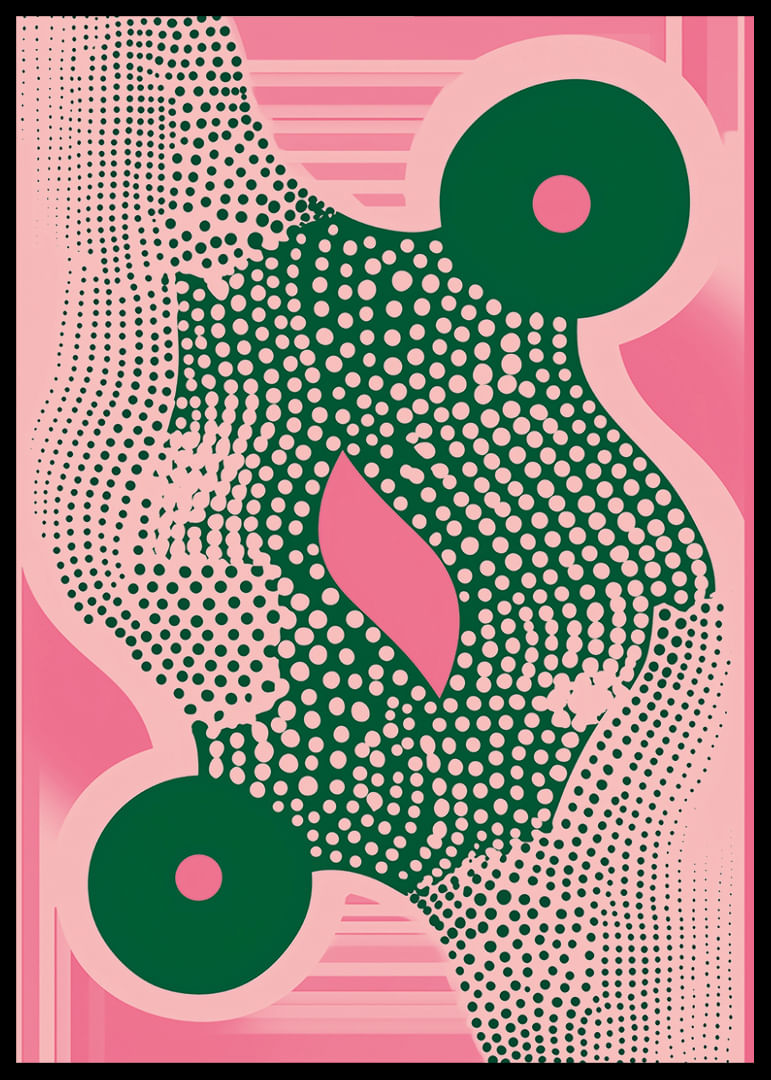 Denna poster fångar omedelbart ögat med sina livliga färger och djärva, abstrakta former. De gröna och rosa tonerna skapar en dynamisk symbios som ger känslan av oändlig rörelse och energi. Den uttrycksfulla designen tillför en modern touch till varje rum och blir en omedelbar konversationsstartare. Denna poster förvandlar vilket rum som helst till en livfull och inspirerande miljö.