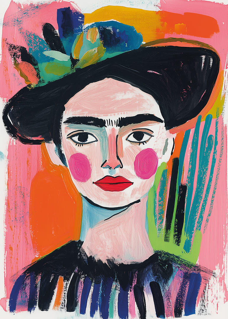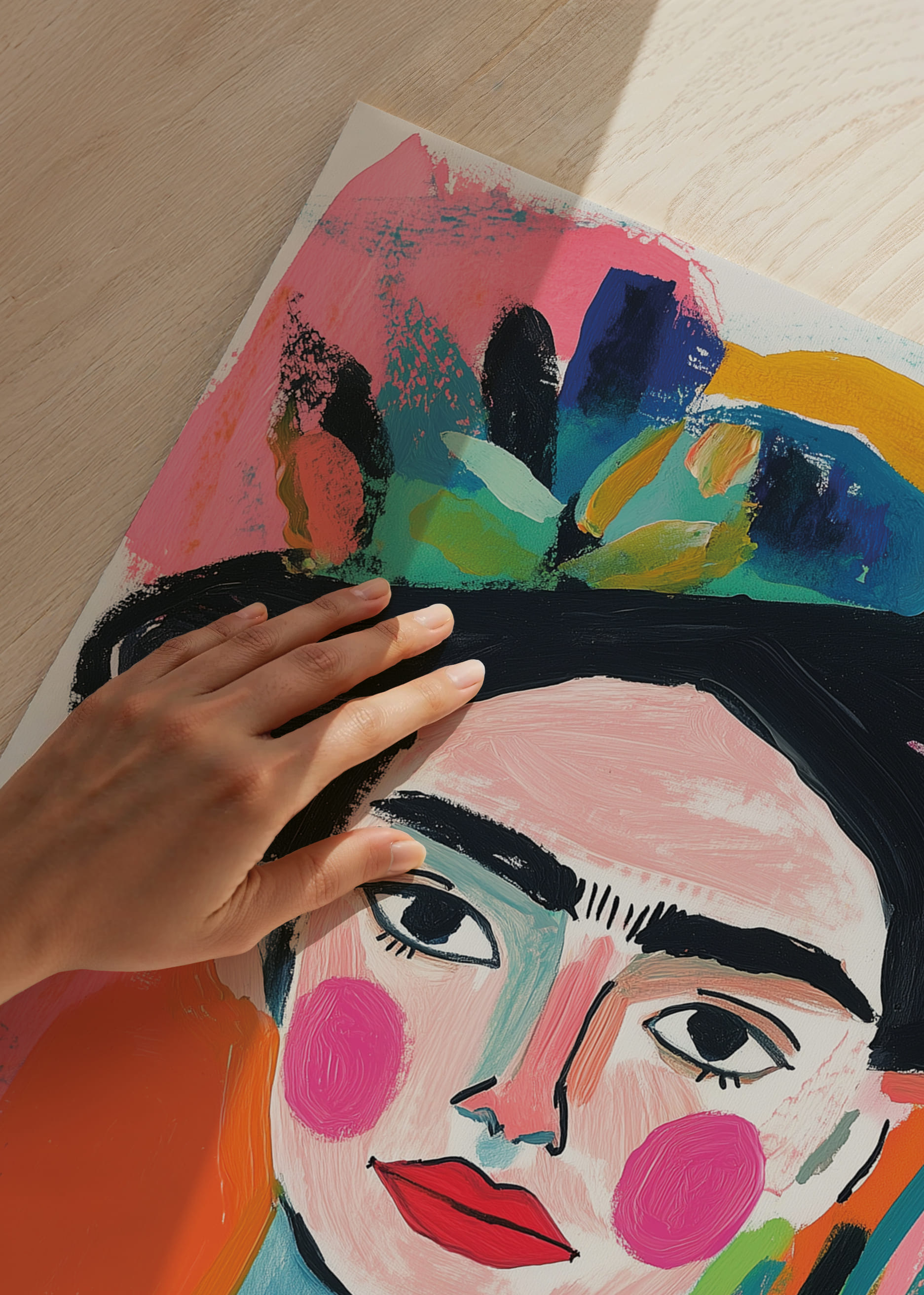 Denna poster fångar ögat med sina levande färger och djärva penseldrag, vilket ger ett starkt uttryck av modern konst. Kontrasten mellan de klara röda och mjuka blå tonerna, tillsammans med detaljrika ansiktsdrag, gör detta verk dynamiskt och djupt fascinerande. Denna poster förvandlar varje rum till ett galleri med sin unika estetik och oemotståndliga energi.