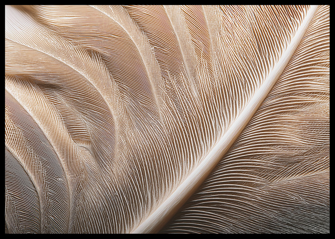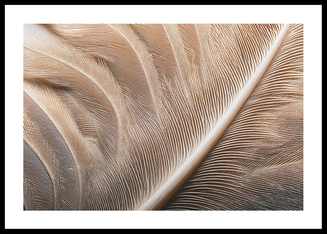 En poster som fångar fjädrars subtila skönhet i detalj, där varje tråd av silkeslen yta flätar samman i ett magiskt spel av ljus och skugga. Denna sensation av mjukhet och elegans skapar en lugnande atmosfär, perfekt för att förhöja känslan av ro och harmoni i ditt hem. Häng denna poster för att ge ditt vardagsrum en sofistikerad touch och påminnas om naturens skönhet.