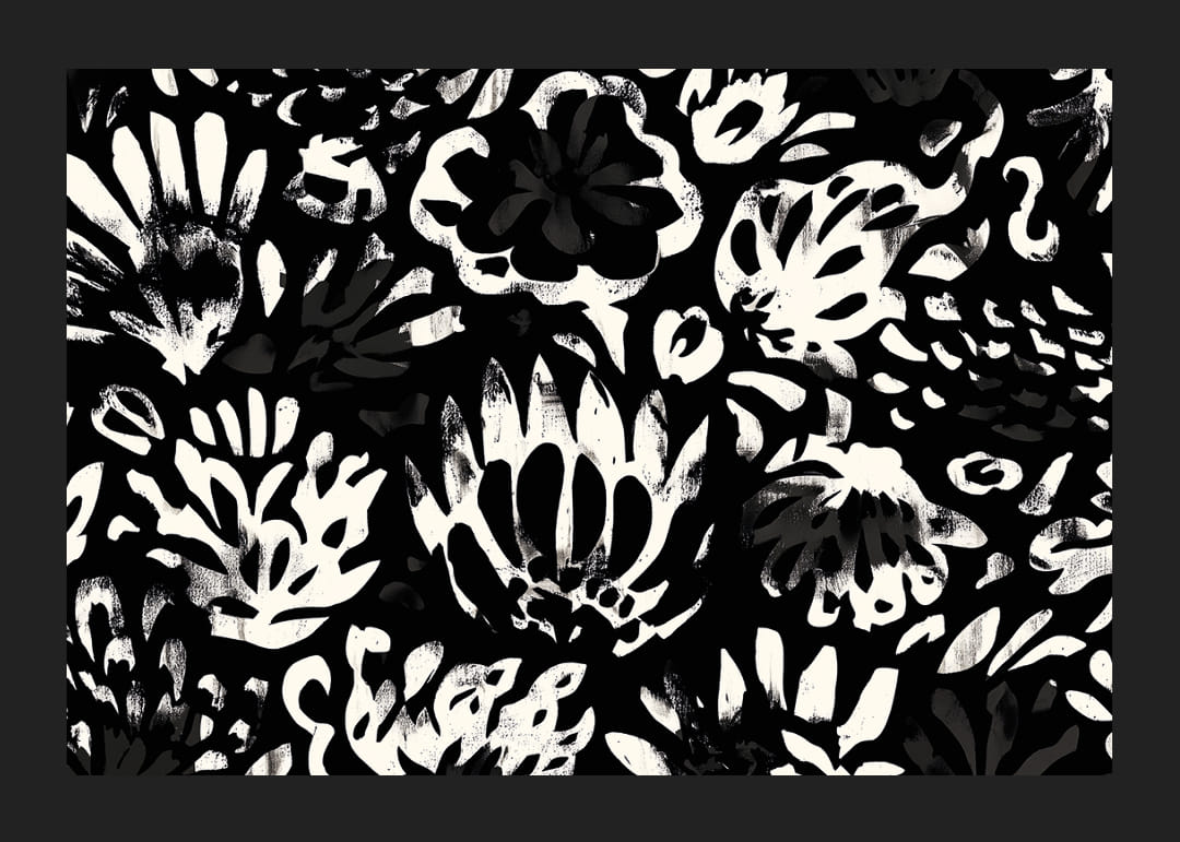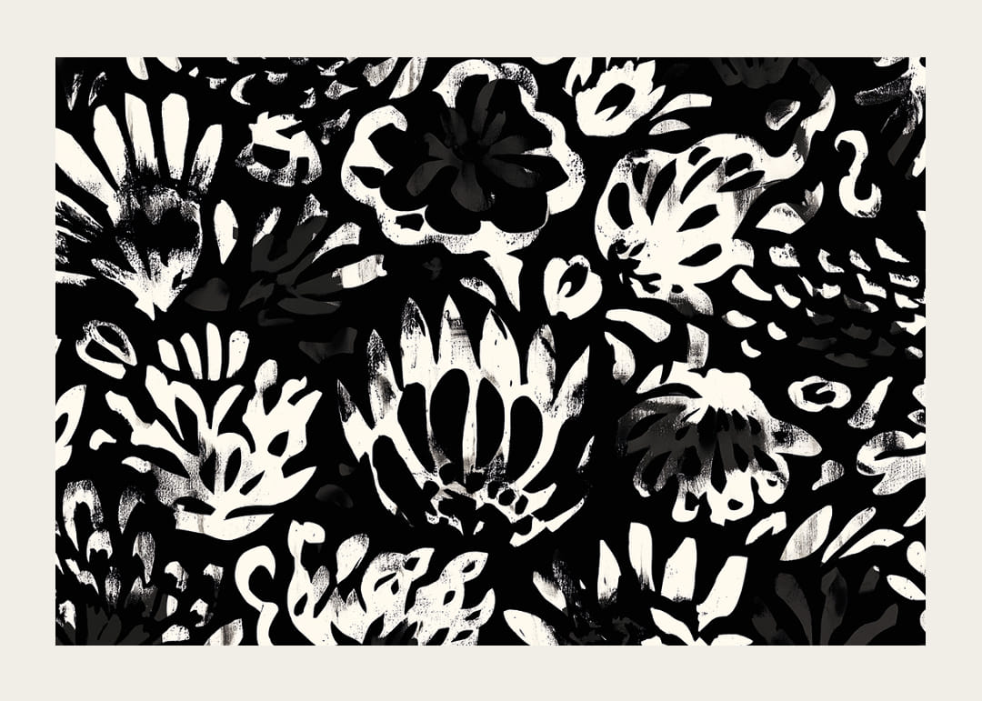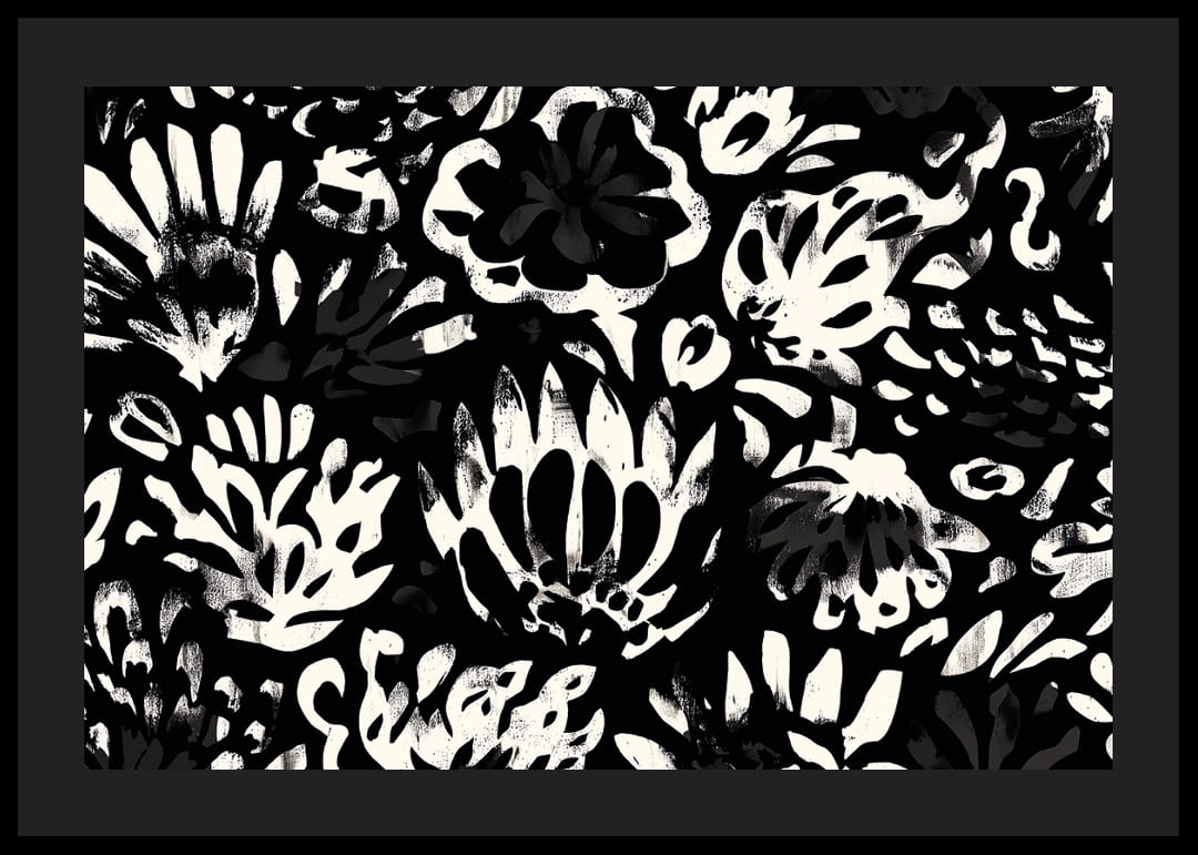 Denna poster fångar ögat med sitt dramatiska mönster av svarta och vita blommor, som dansar i en hypnotisk symfoni. Det monokroma temat ger en tidlös elegans som förhöjer alla rum. Med sina djärva kontraster skapar postern en mystisk och konstnärlig atmosfär, perfekt för att ge vardagsrummet eller kontoret en touch av modern stil och karaktär.