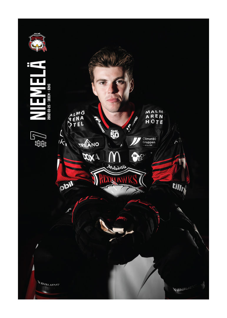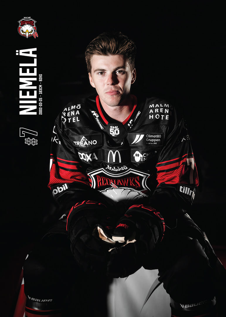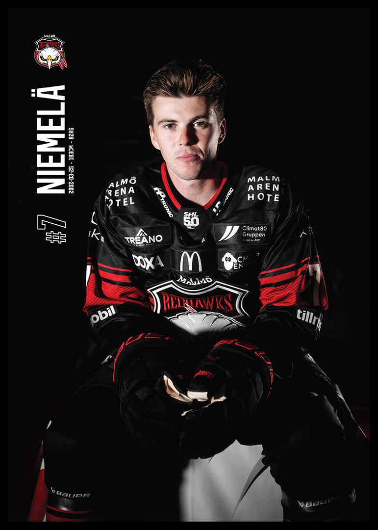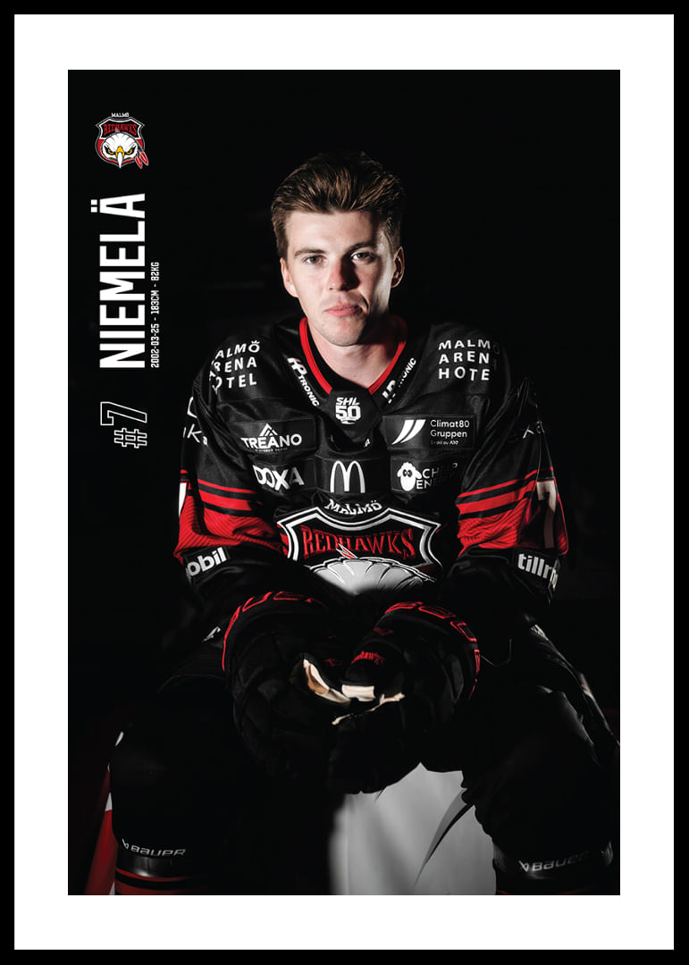 Stilren poster från kategorin Malmö Redhawks med motiv Topi Niemelä #7 Malmö Redhawks 2025/2026