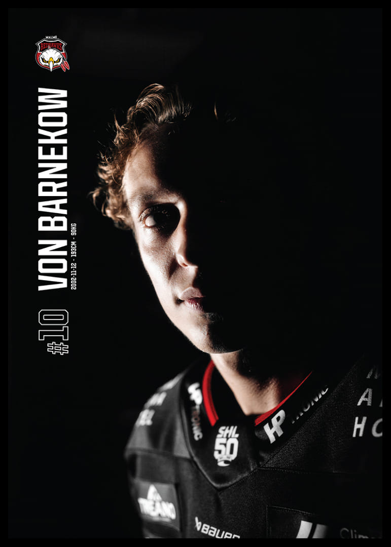Stilren poster från kategorin Malmö Redhawks med motiv William Von Barnekow #10 Malmö Redhawks 2025/2026
