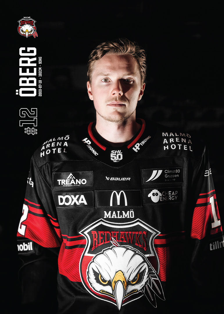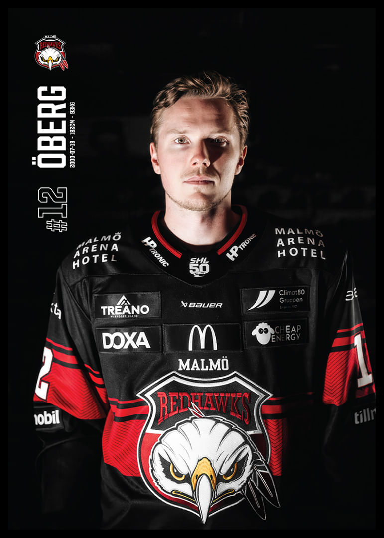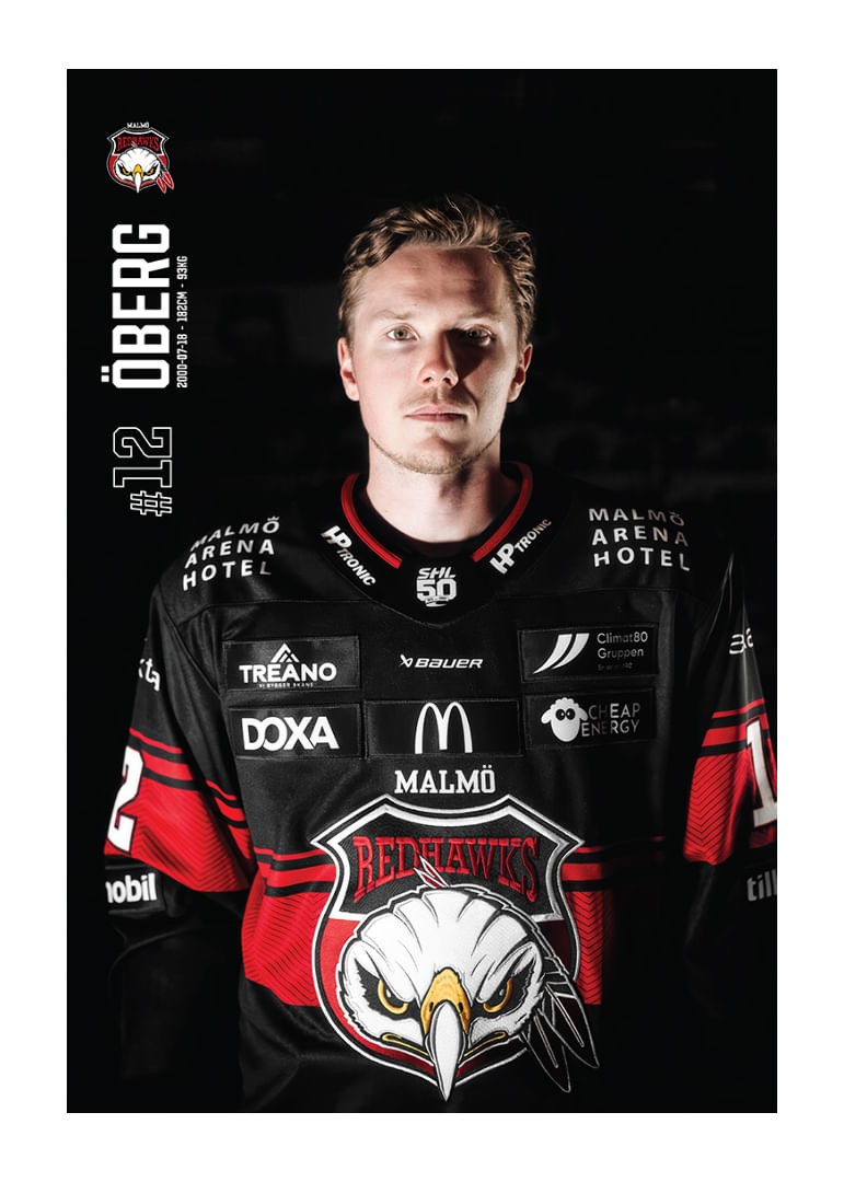 Stilren poster från kategorin Malmö Redhawks med motiv Linus Öberg #12 Malmö Redhawks 2025/2026