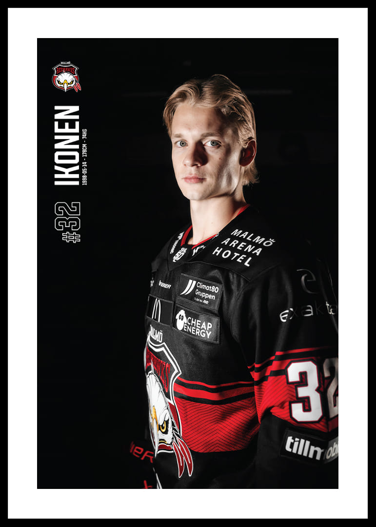 Stilren poster från kategorin Malmö Redhawks med motiv Joona Ikonen #32 Malmö Redhawks 2025/2026