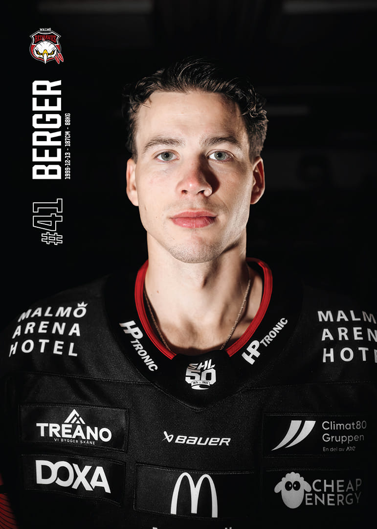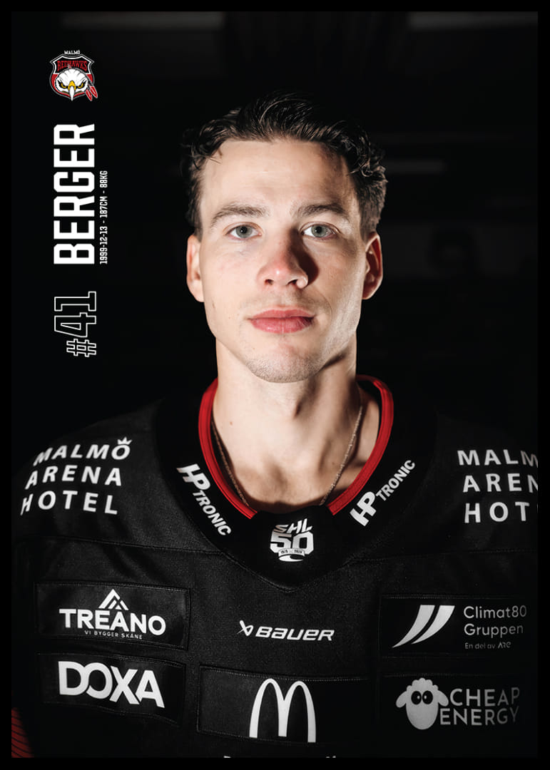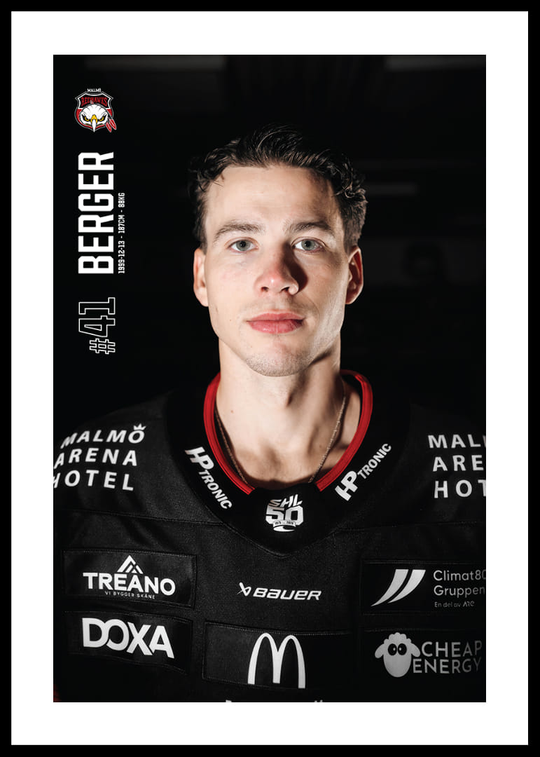 Stilren poster från kategorin Malmö Redhawks med motiv Joseph Berger #41 Malmö Redhawks 2025/2026
