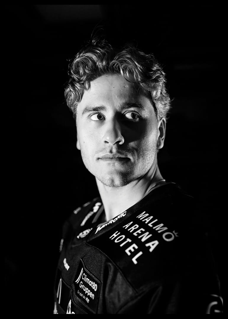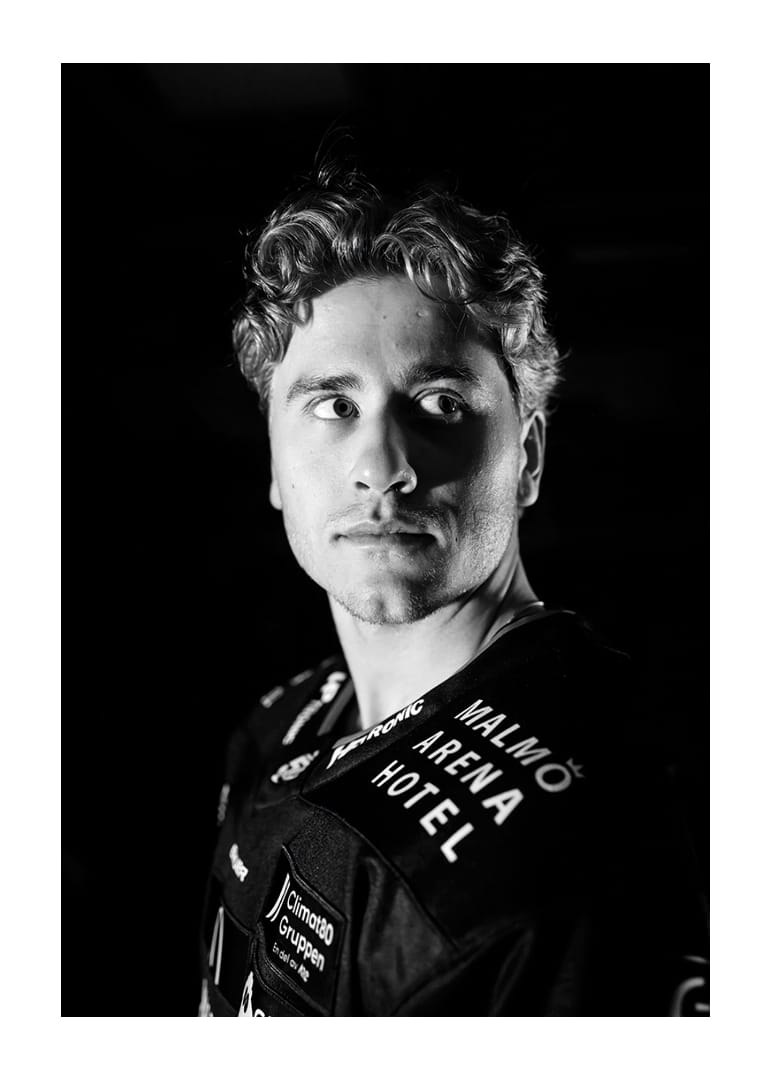 Stilren poster från kategorin Malmö Redhawks med motiv Eemil Viro #6 Malmö Redhawks B&W 2025/2026