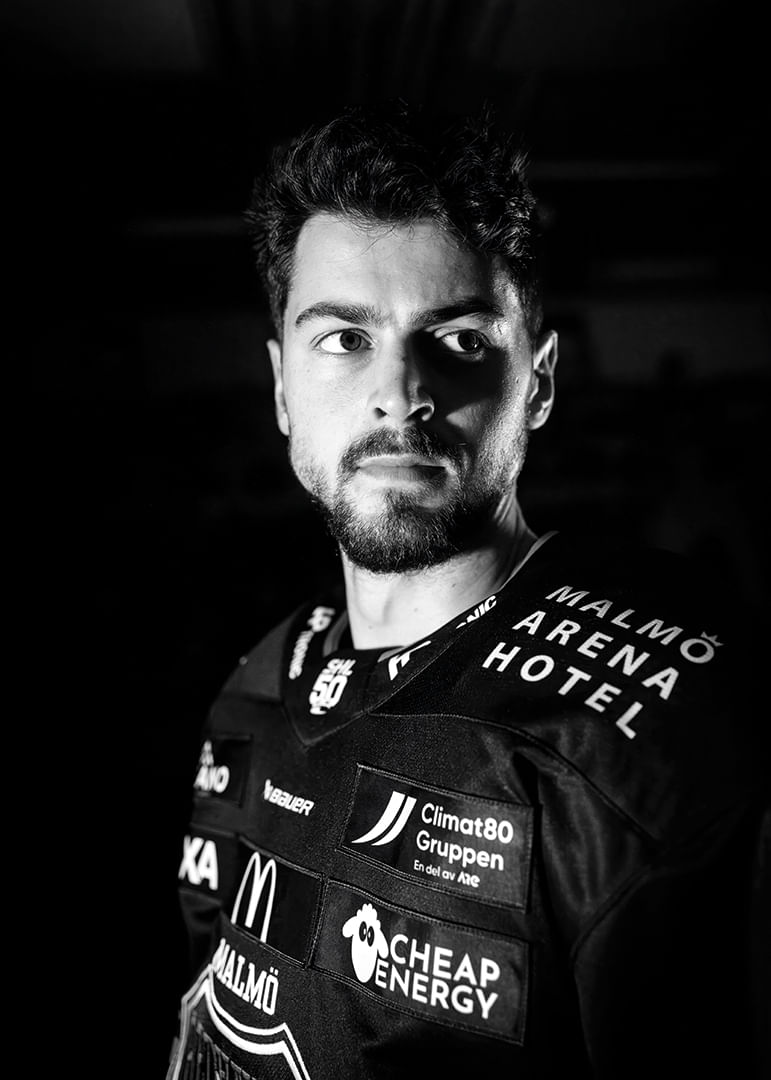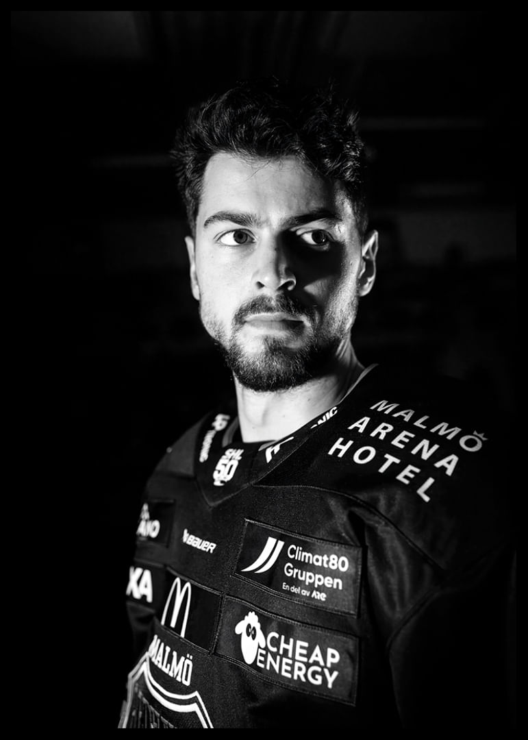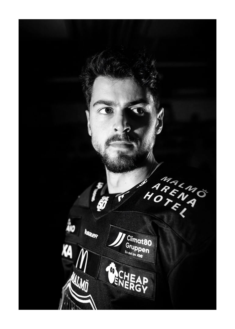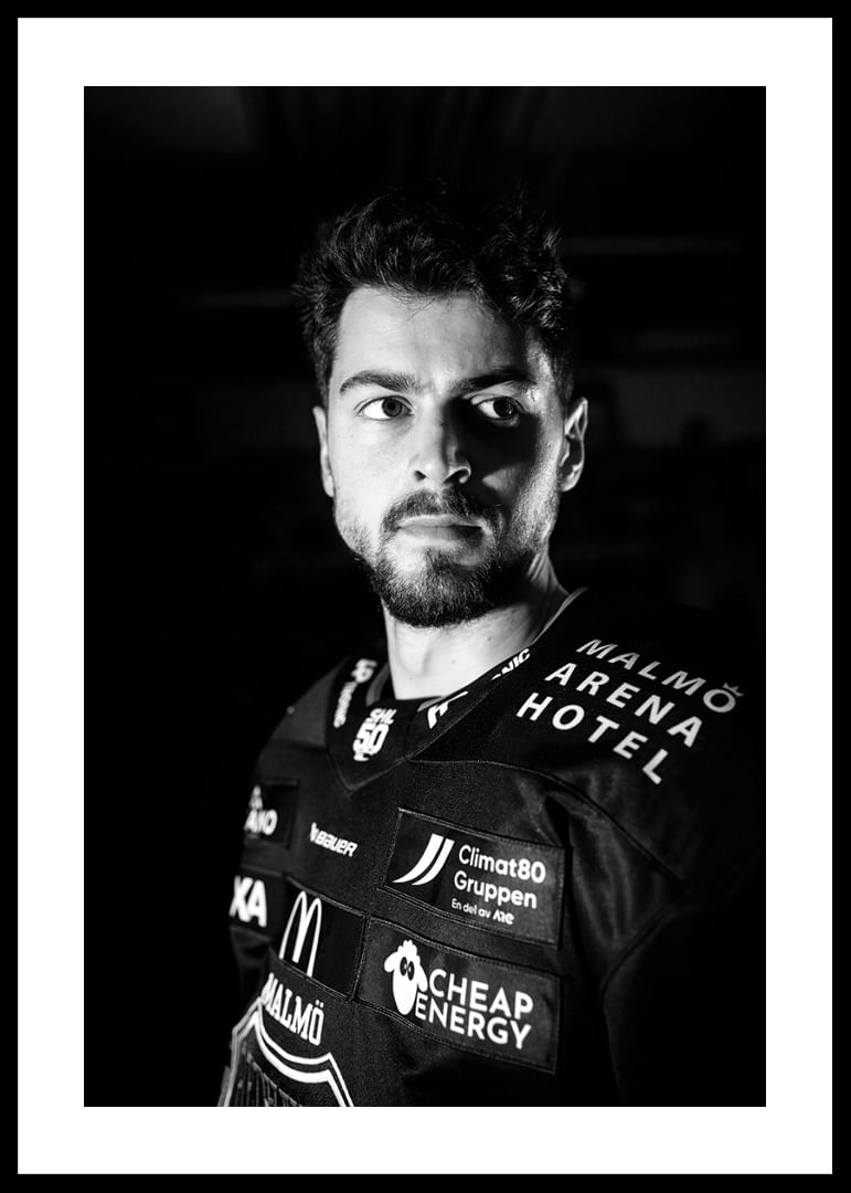 Stilren poster från kategorin Malmö Redhawks med motiv Seth Barton #49 Malmö Redhawks B&W 2025/2026