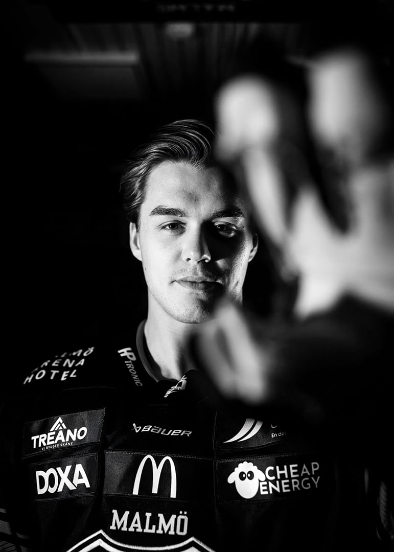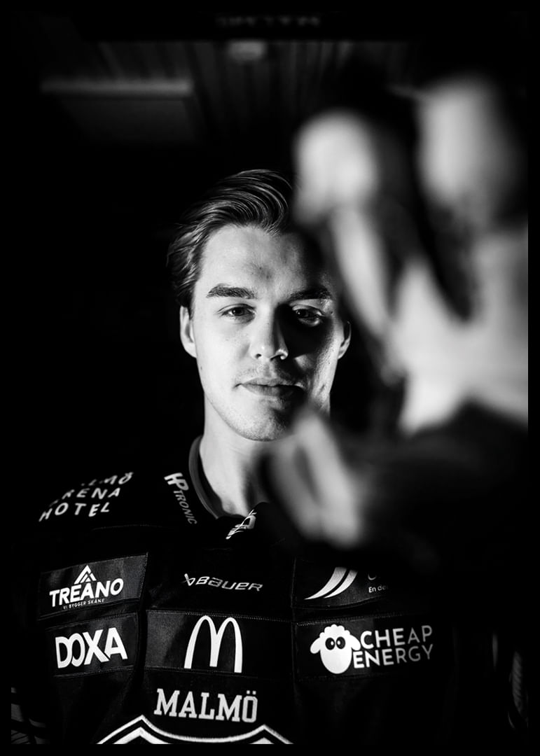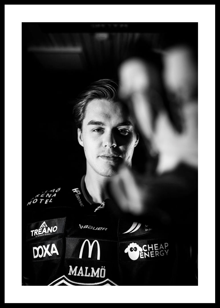 Stilren poster från kategorin Malmö Redhawks med motiv Axel Sundberg #91 Malmö Redhawks B&W 2025/2026