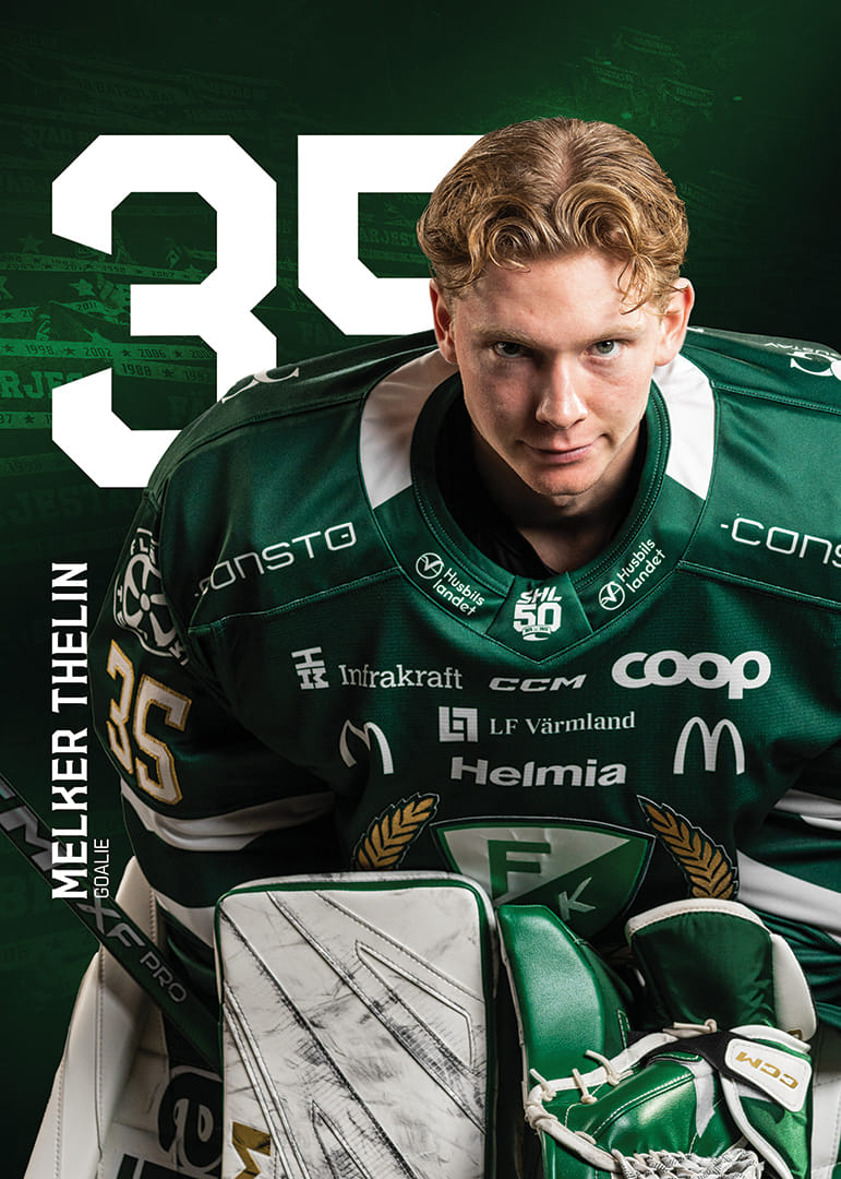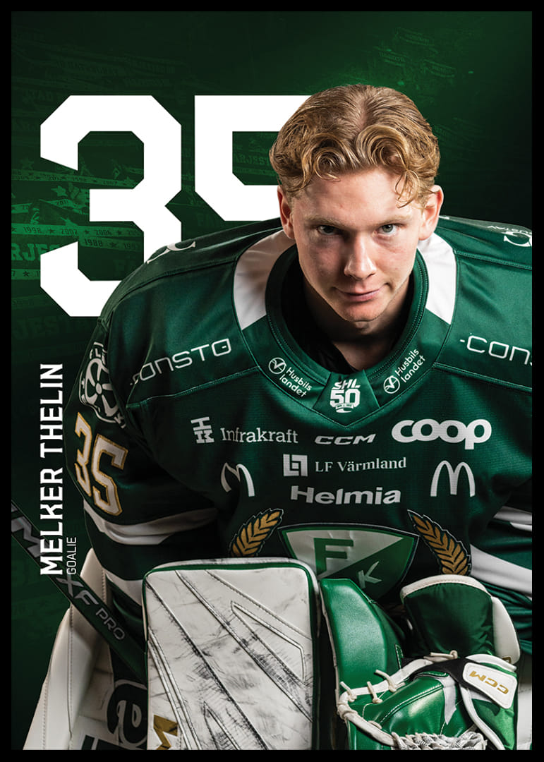 Stilren poster från kategorin Färjestad BK med motiv Melker Thelin #35 Färjestad BK 2025/2026