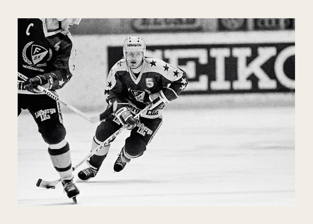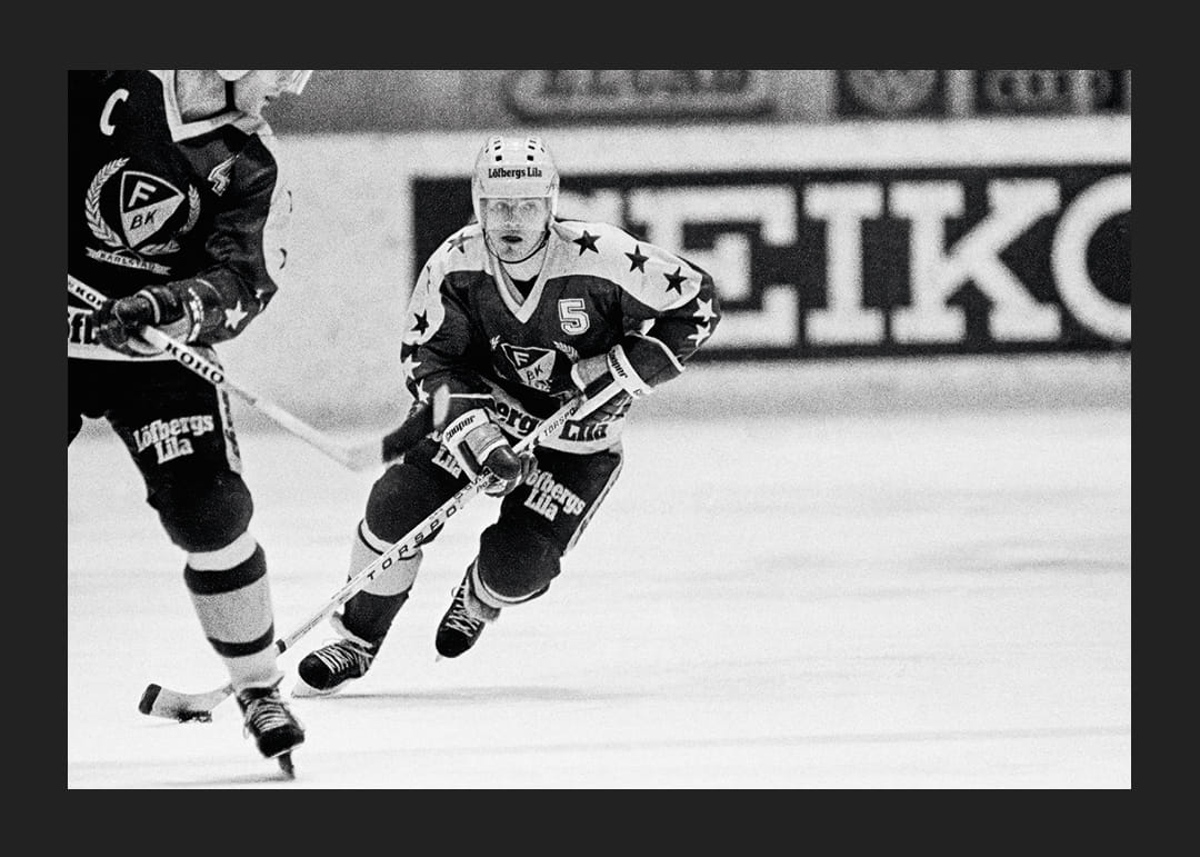 Håkan Loob i en match i Eliteserien för Färjestad BK Mot Djurgården 1982