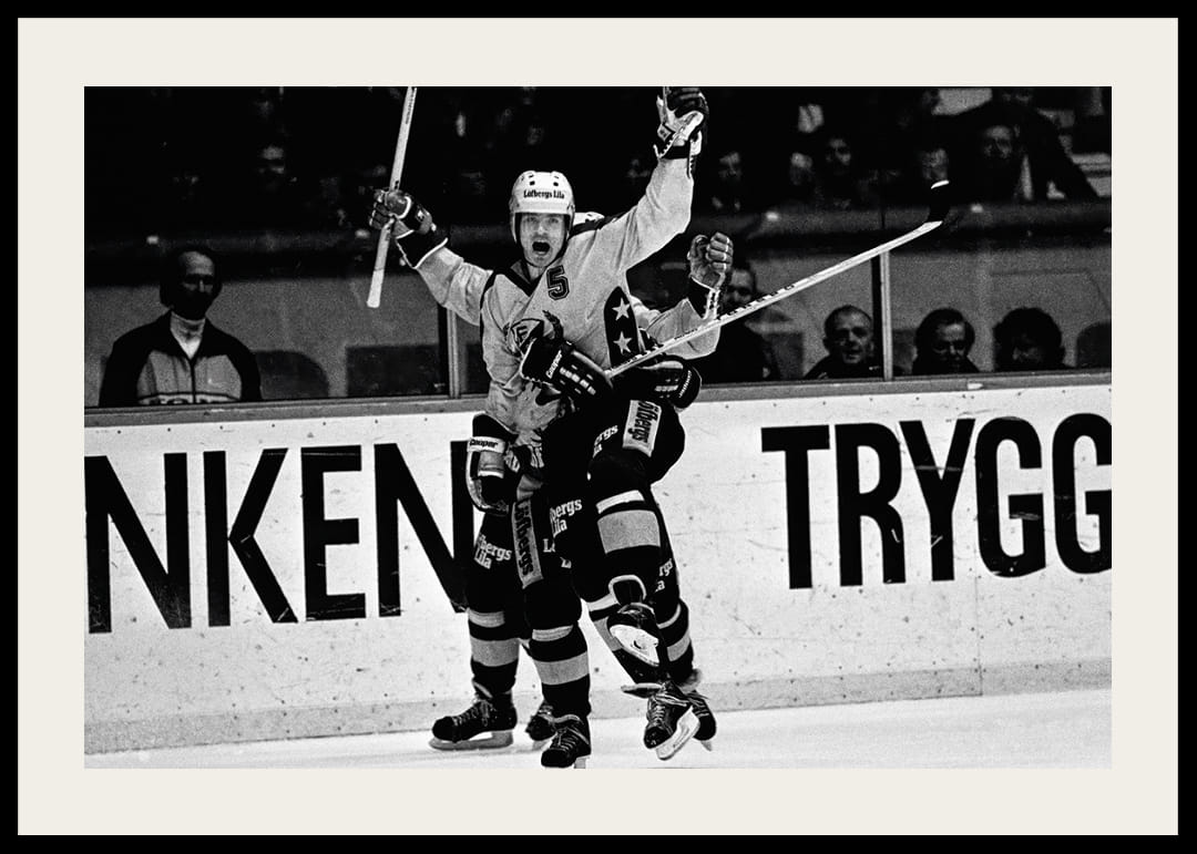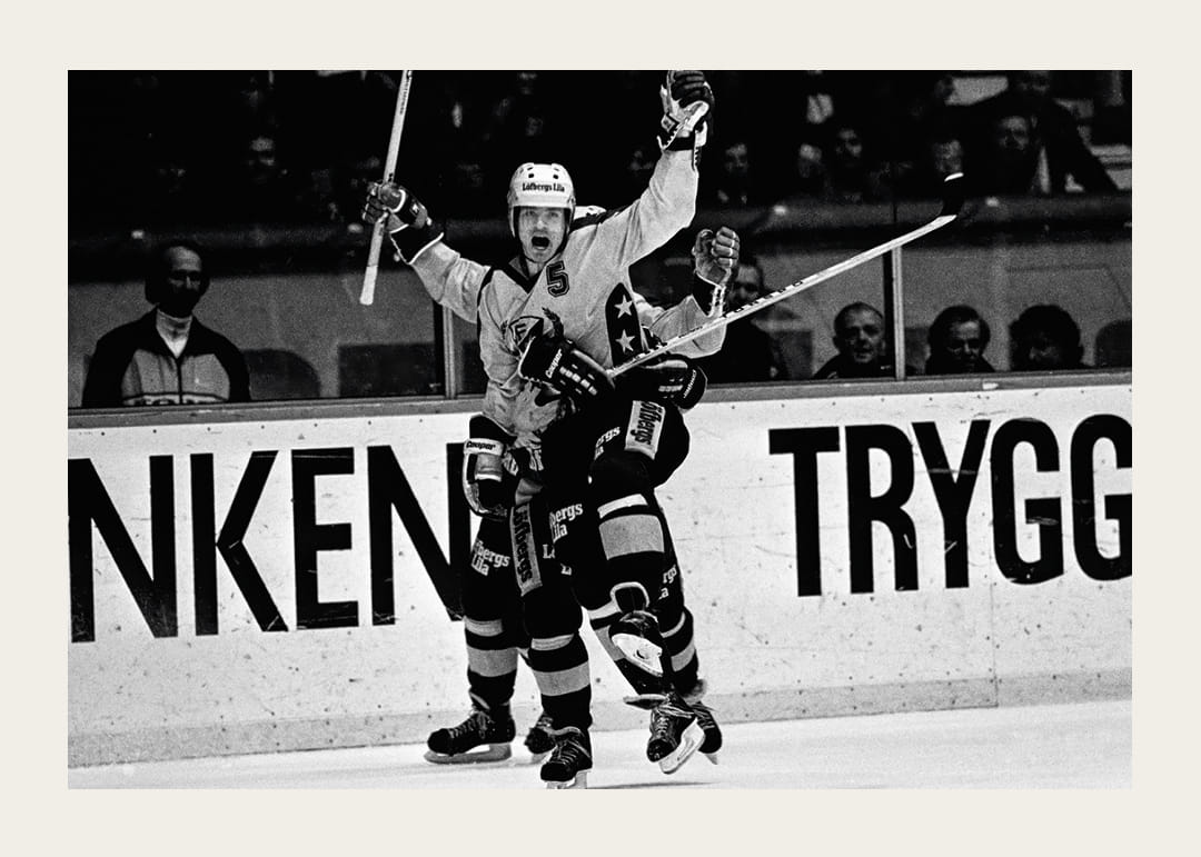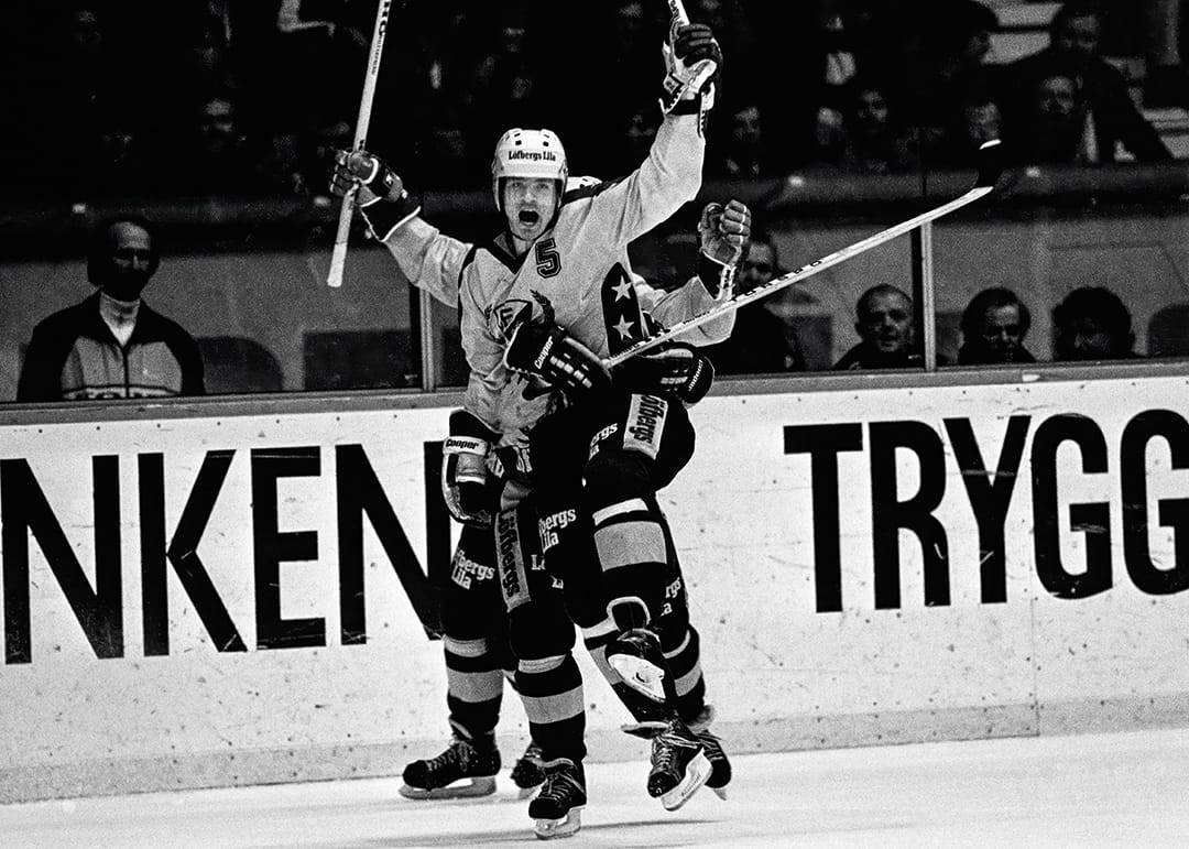 Håkan Loob firar mål i SM-Final 4, Djurgården - Färjestad BK säsongen 1982/1983.