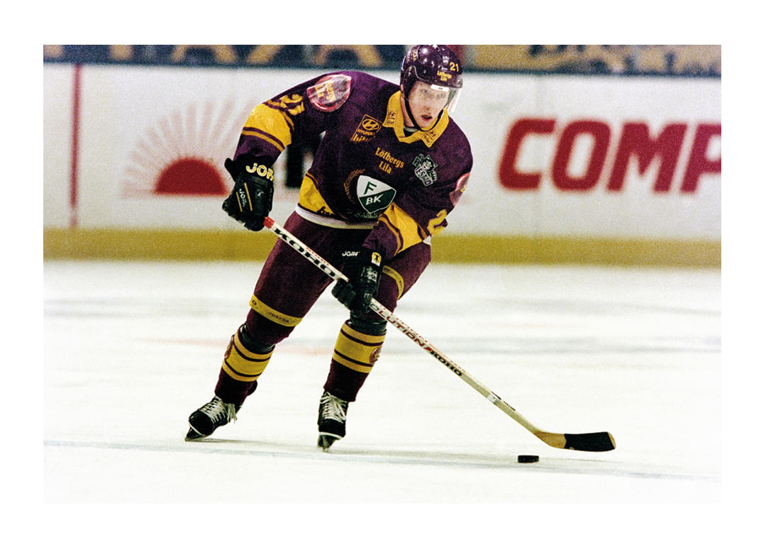 Jörgen Jönsson i vinstmatchen som Färjestad vann över Djurgården med 5-3 1997.