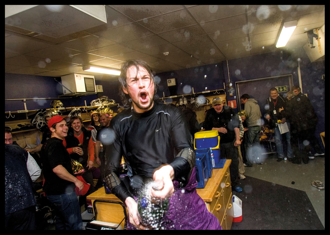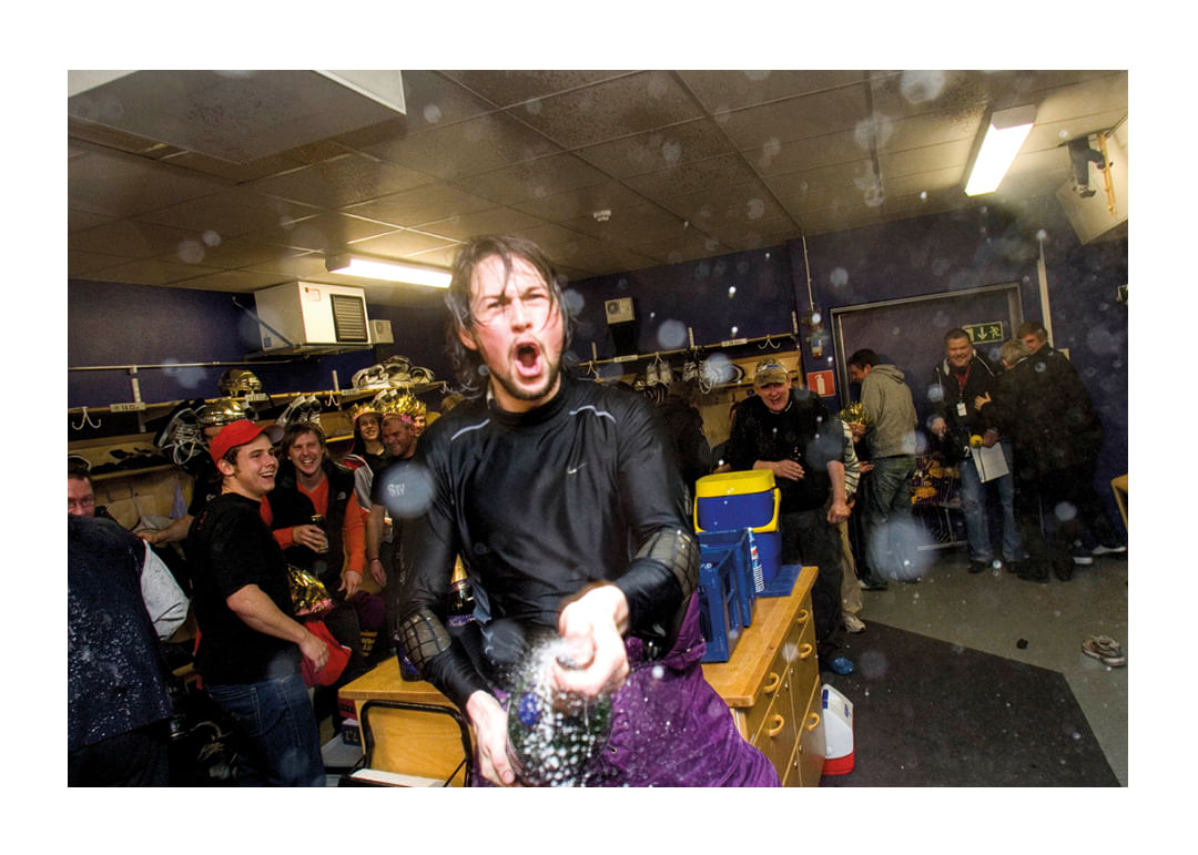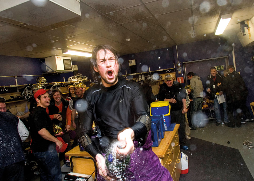 Rickard Wallin firar SM-guldet i omklädningsrummet på klassiskt vis 2006.