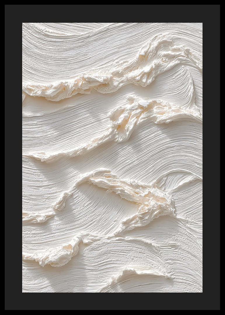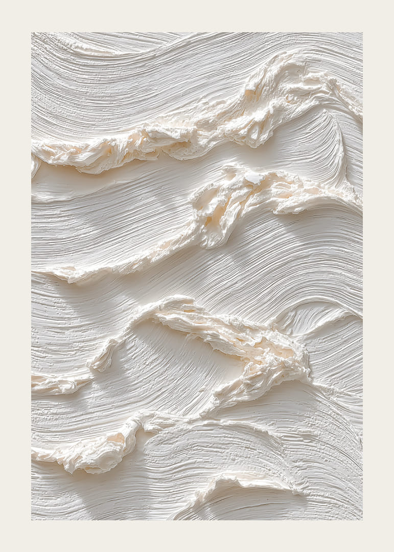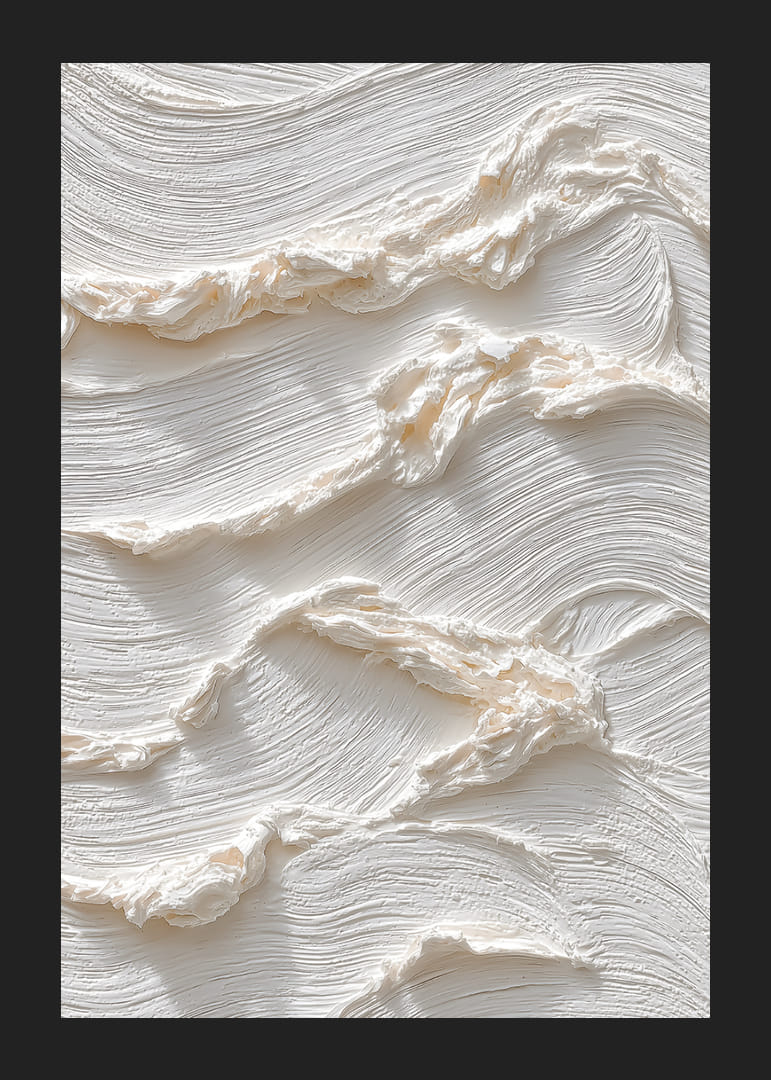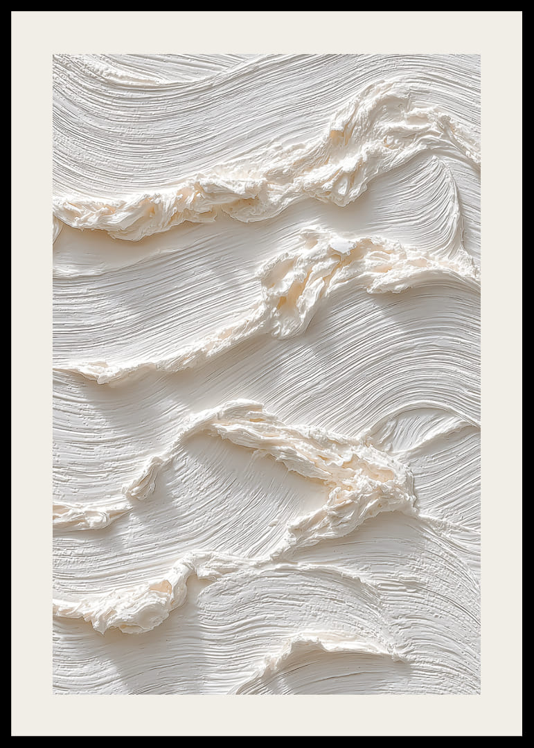 Denna poster fångar uppmärksamheten med sina mjuka, silkeslena vågor som rör sig över ytan i en subtil dans. Den ljusa, krämiga nyansen förmedlar en känsla av lugn och balans, vilket förstärker intrycket av elegant enkelhet. En poster som denna förvandlar vilket rum som helst till en fridfull oas där skönheten ligger i de mjuka detaljerna och den harmoniska atmosfären.