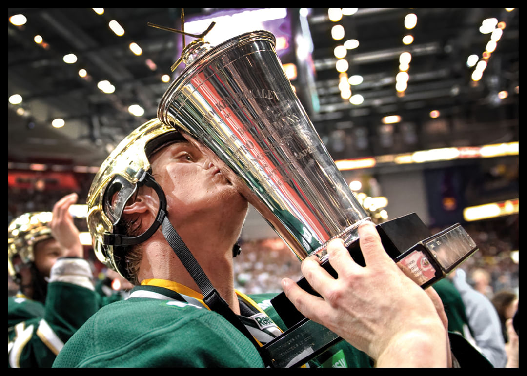 Magnus Nygren, kysser bucklan efter SM-guldet 2011.