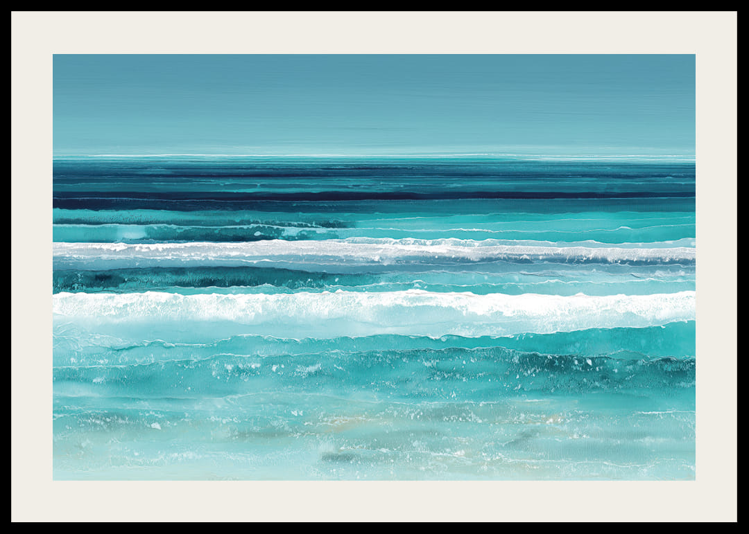 Denna poster fångar havets lugn med mjuka, böljande blå toner som sveper fram över papperet. Färgerna från azurblått till djupare indigonyanser ger en känsla av ro och stillhet. Havets oändliga horisont bjuder in till reflektion och avkoppling. Postern förvandlar varje rum till en oas av frid, där mjukheten i vågorna skapar en atmosfär av harmoni och lugn.