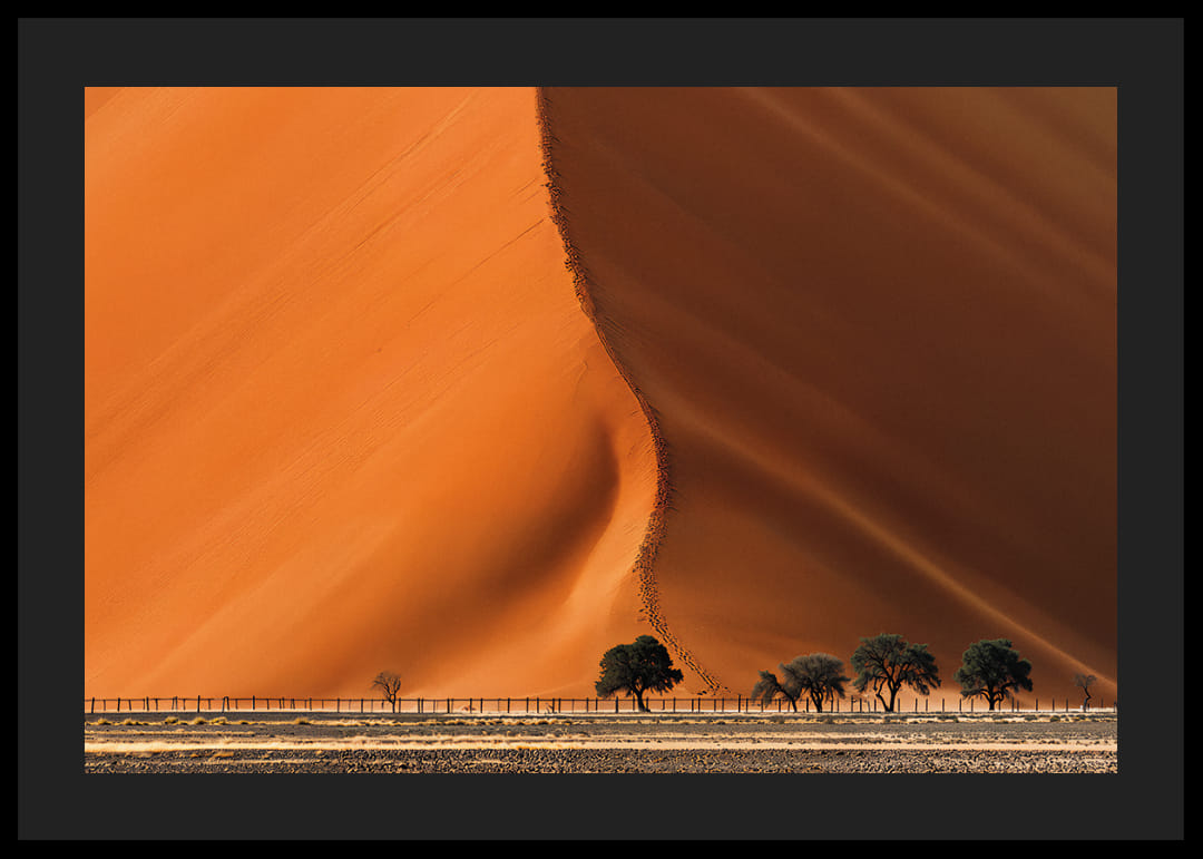Det första intrycket av denna poster är den fantastiska kontrasten mellan himmel och ökendynor. De mjuka, svepande linjerna i sanden skapar en känsla av oändlig harmoni. Färgerna är varma och inbjudande, samtidigt som de framkallar en känsla av stillhet och ro. Denna poster ger vilket rum som helst en tidlös elegans och en påminnelse om naturens skönhet, perfekt för att skapa en lugn atmosfär.