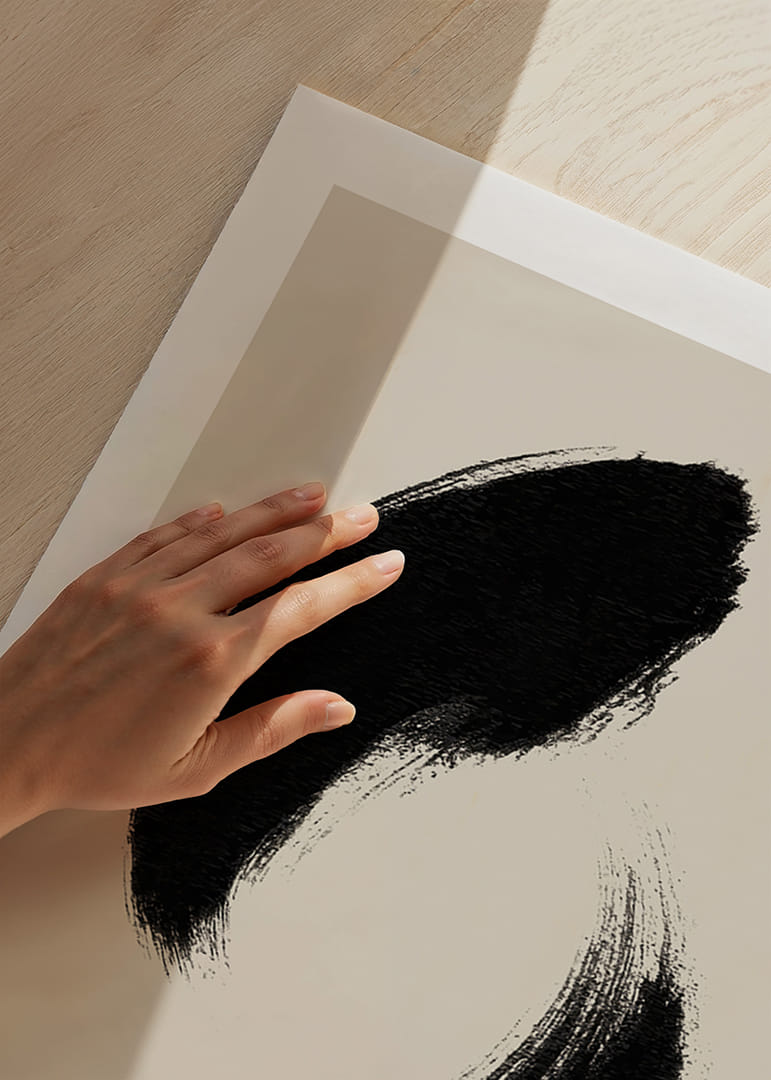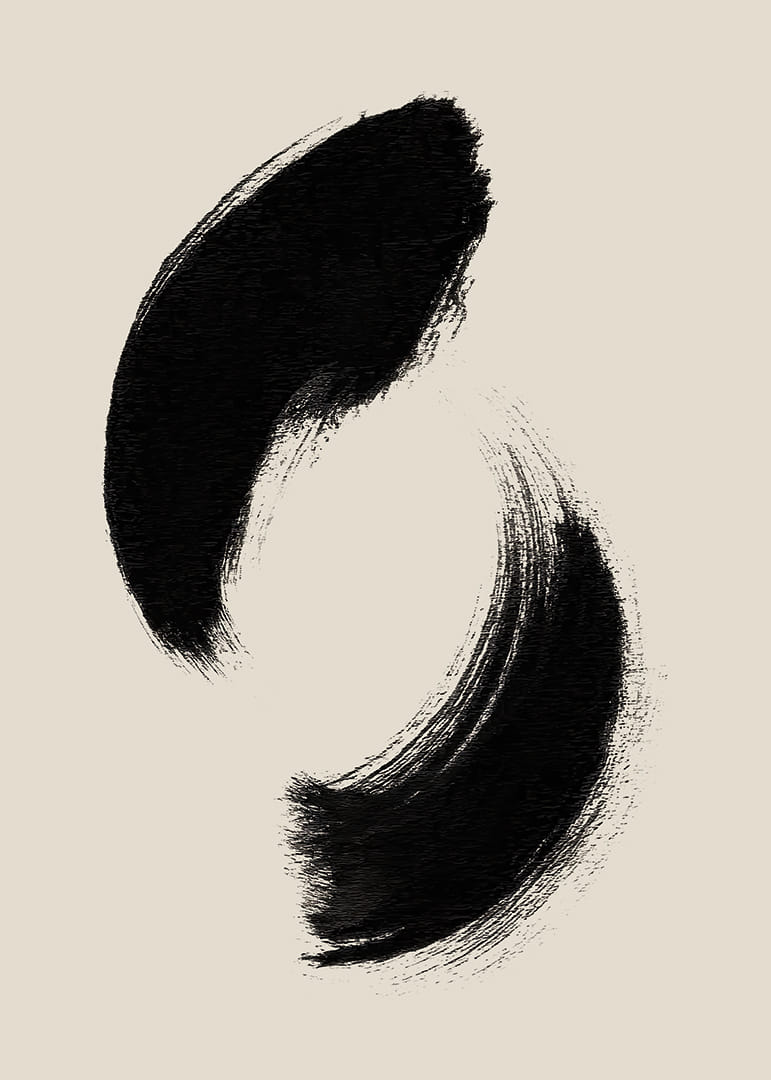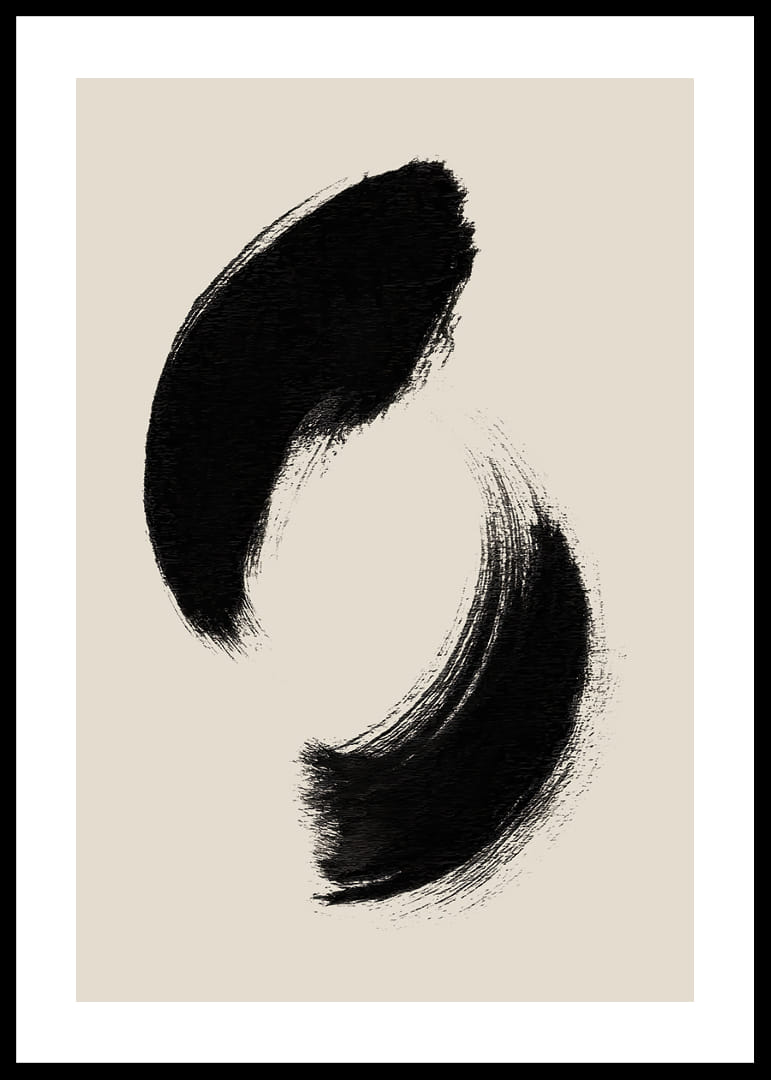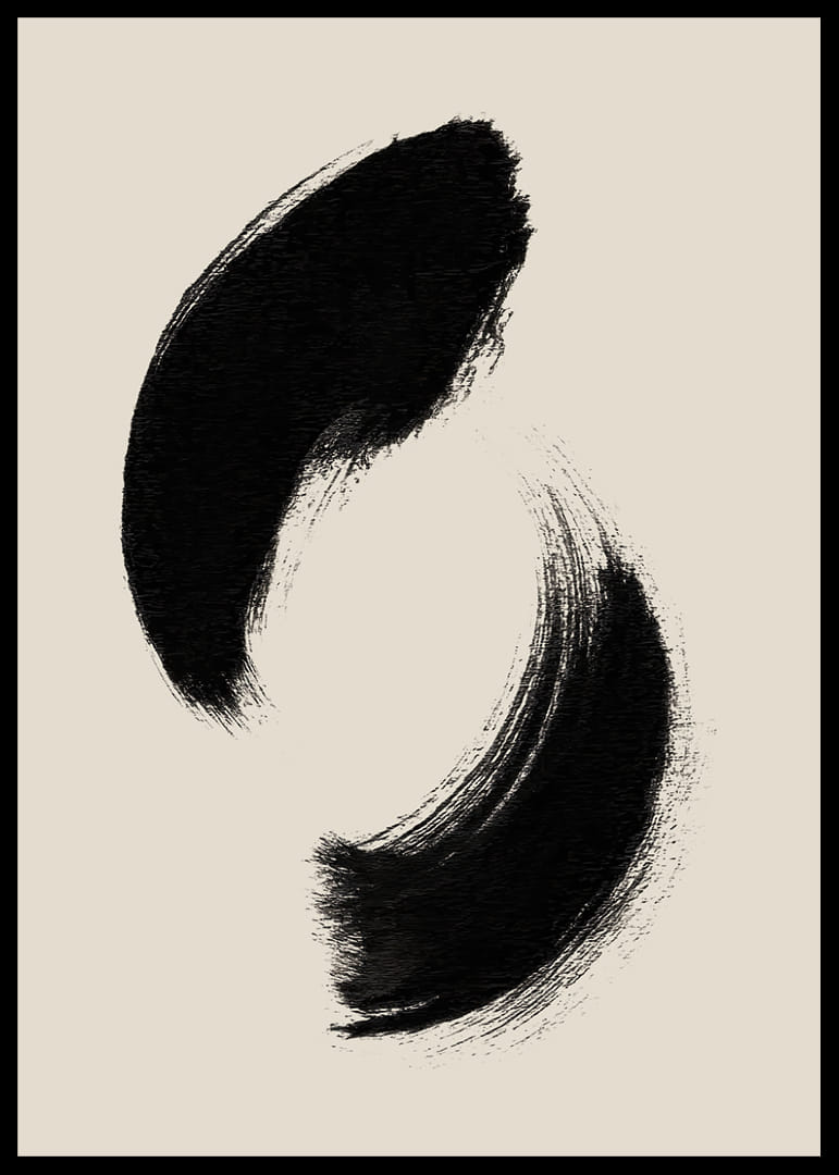 Denna poster fångar perfekt den tidlösa skönheten i ett par svepande penseldrag, som skapar en känsla av lugn och enkelhet. De djärva, svarta stråken mot den mjuka bakgrunden ger en harmonisk balans som drar blicken och inbjuder till kontemplation. Med sin minimalistiska elegans blir denna poster en självklarhet i varje rum och sprider en fridfull atmosfär genom sin subtila styrka