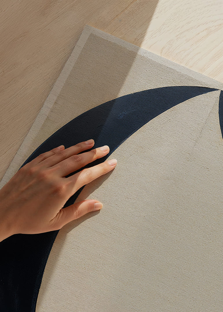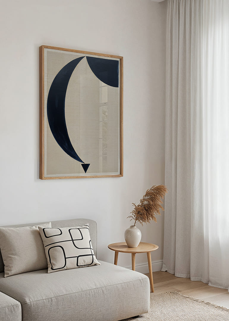 Denna poster fångar genast blicken med sina svepande, mörka former mot en ljus bakgrund och skapar en känsla av kosmisk elegans och harmoni. Den minimalistiska stilen låter formerna tala för sig själva, och de mjuka linjerna ger en rogivande känsla. En sådan poster förvandlar vilket rum som helst till en plats där lugn och skönhet samspelar och förhöjer rummets atmosfär med sin stilrena närvaro