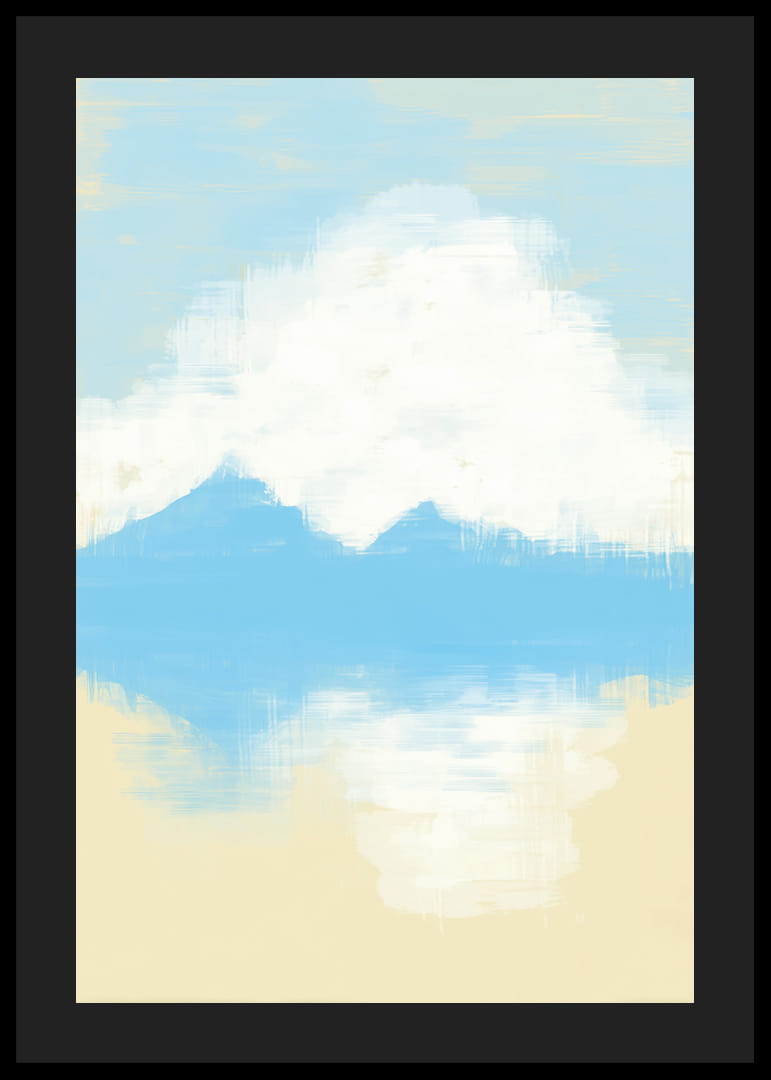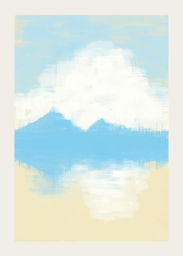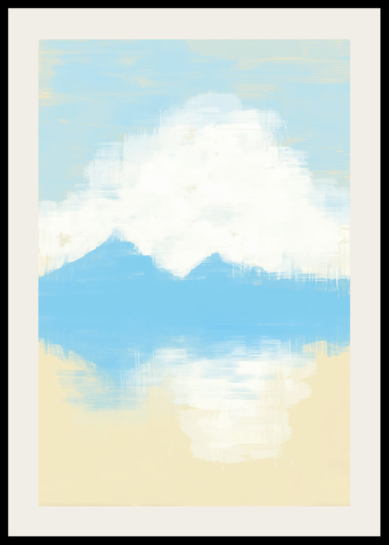 Denna poster fångar en drömlik vy med sina mjuka blå och vita penseldrag. Bergstopparna speglas i ett stilla vatten, vilket ger en känsla av oändligt lugn och harmoni. Färgerna och kompositionen skapar en avkopplande atmosfär som genast förvandlar vilket rum som helst till en fristad. Denna poster blir den perfekta bakgrunden för meditation eller lugna stunder i hemmet