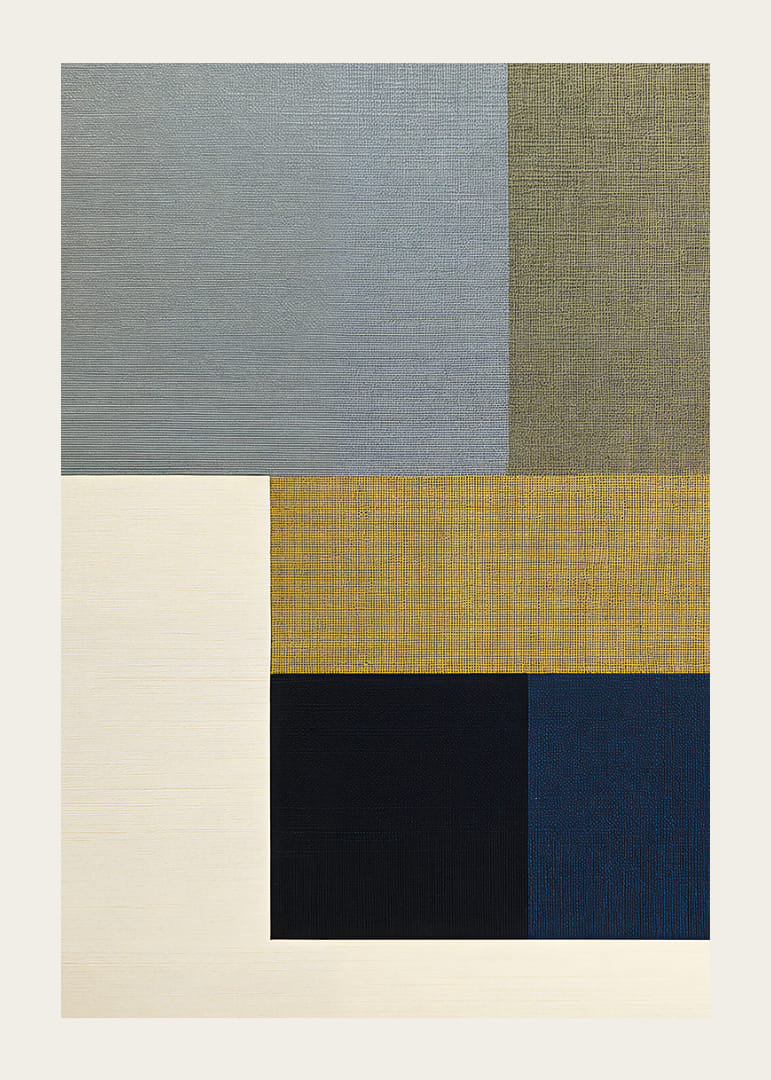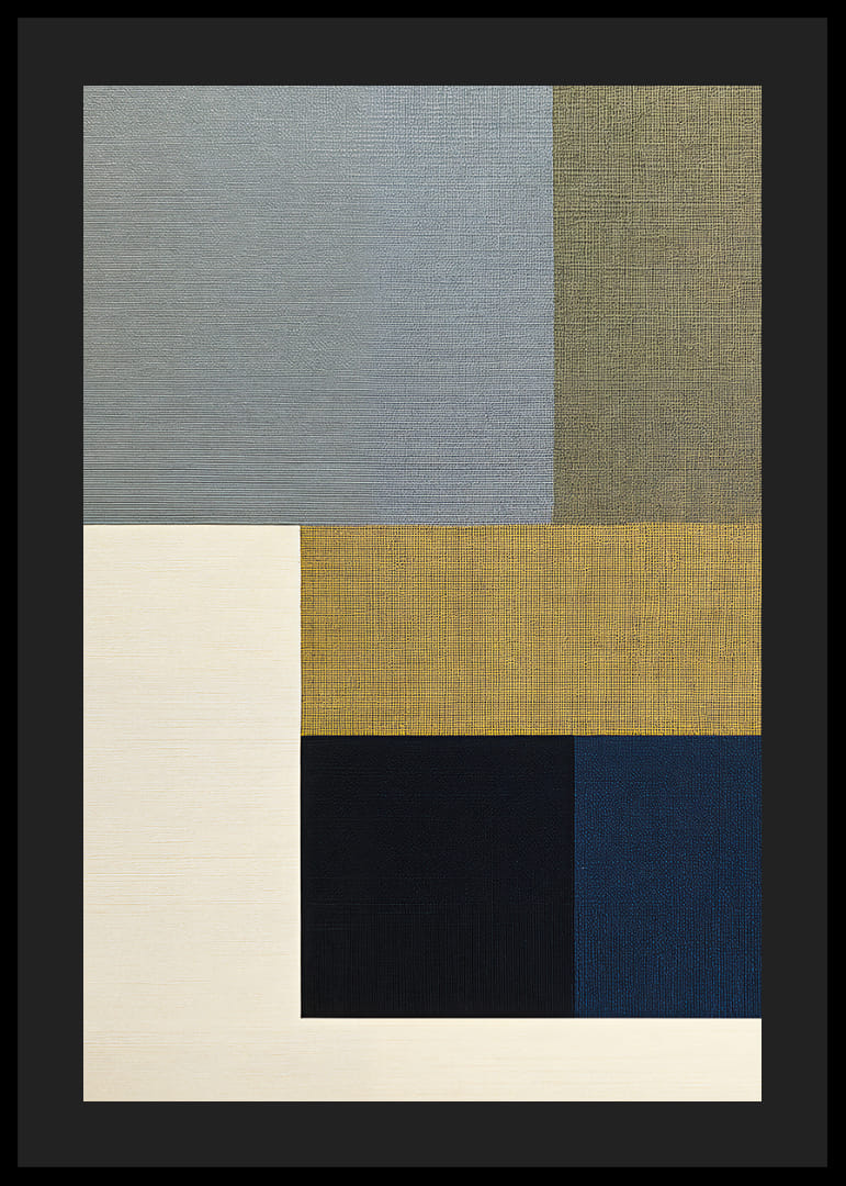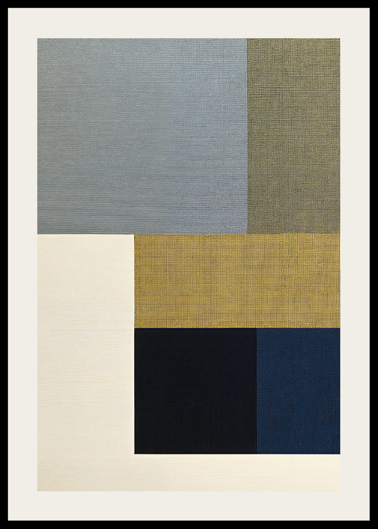 Denna poster utstrålar en sofistikerad enkelhet med dess eleganta geometriska former i dämpade färger. Kombinationen av grått, beige och blått ger en harmonisk känsla som är både lugnande och stilren. De rena linjerna och balanserade proportionerna gör denna poster till ett perfekt tillägg i alla moderna hem, där den förhöjer atmosfären med en känsla av lugn och urskiljbar estetik