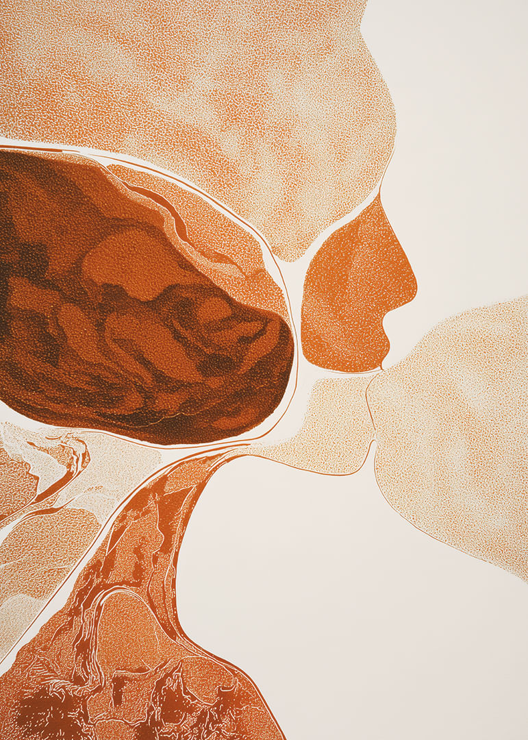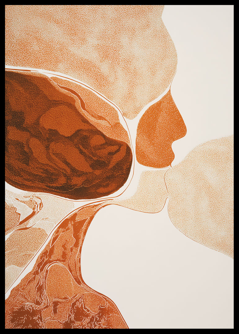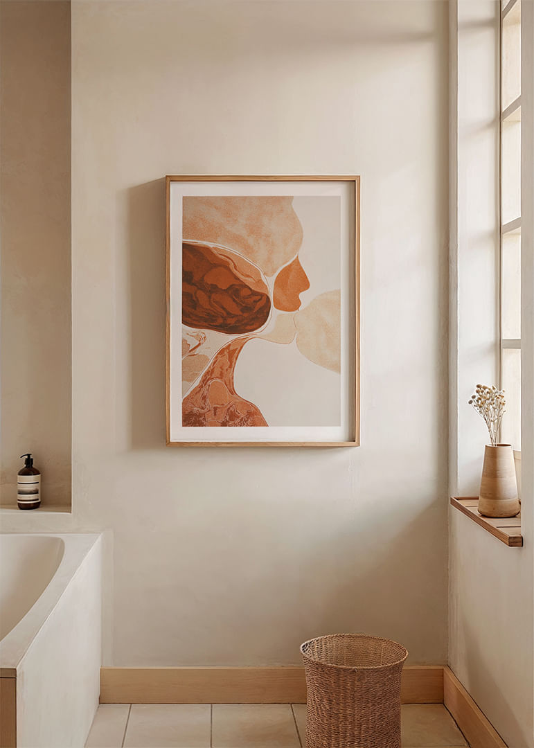 Denna poster fångar omedelbart uppmärksamheten med sina mjuka jordtoner och eleganta konturer. Den skildrar en subtil dans av färger som smälter samman i en harmonisk enhet. Det finns en känsla av djup och rörelse som lockar blicken och förstärker rummets atmosfär. Postern förvandlar alla utrymmen den pryder till en oas av lugn och skönhet, vilket gör den till ett perfekt val för ditt hem