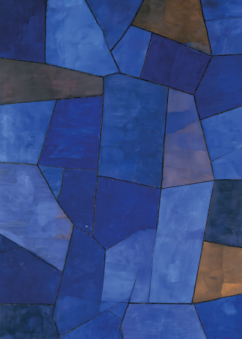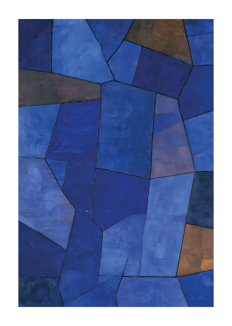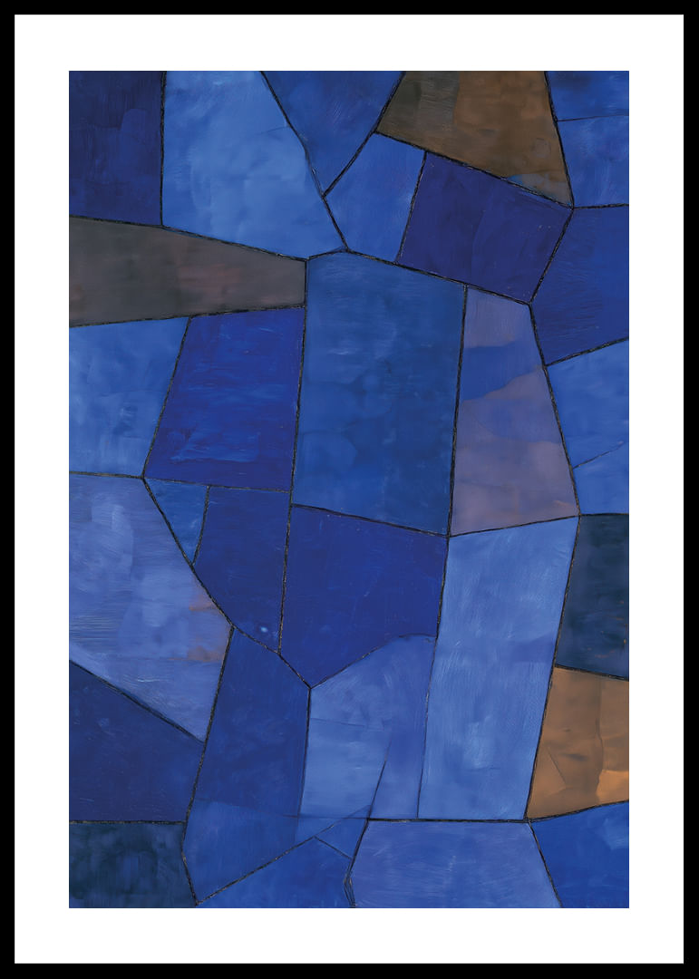 I denna poster förenas djupa blå toner i ett harmoniskt geometriskt mönster som fångar blicken och lugnar sinnet. De olika nyanserna av blått skapar en känsla av mystik och djup, medan den subtila mosaiken ger dynamik och rörelse. Denna poster är perfekt för att tillföra en sofistikerad och elegant atmosfär till vilket rum som helst och framhäver interiörens karaktär på ett smakfullt sätt