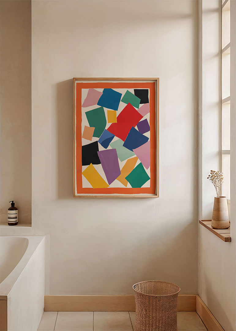 Ett färgstarkt och dynamiskt abstrakt konstverk fyller rummet med en känsla av liv och rörelse. Postern bjuder på en explosion av färger i olika former som samspelar i perfekt harmoni, vilket skapar en visuellt tilltalande och energigivande atmosfär. Dess intensiva färger och kreativa komposition gör denna poster till ett attraktivt tillskott som förhöjer och lyfter alla moderna bostadsmiljöer
