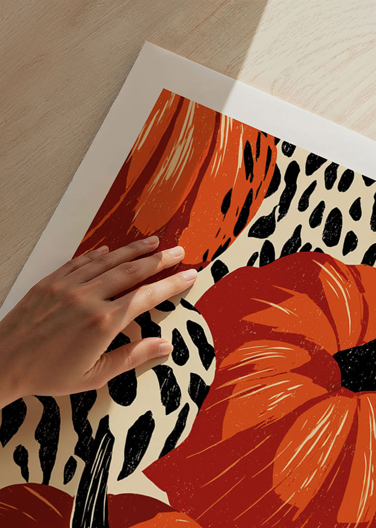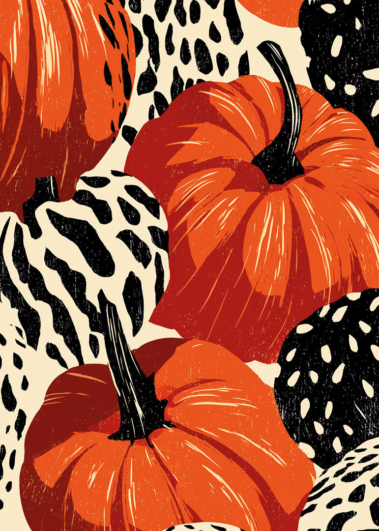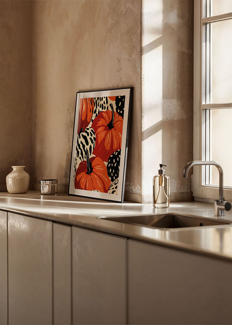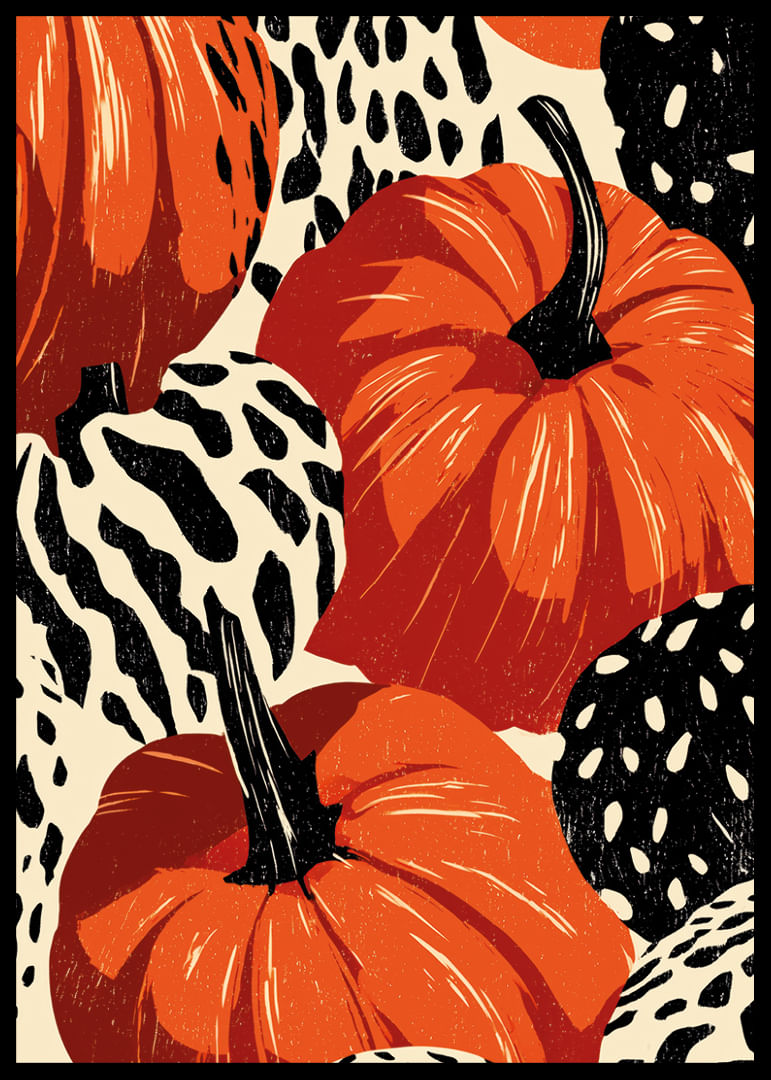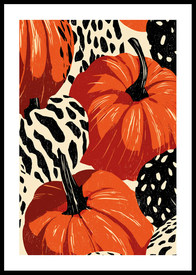 Denna poster fångar höstens magi med sina livfulla pumpor. Den djärva kontrasten mellan orange och svart ger energi och liv till vilket rum som helst. Med en känsla av naturens vilda skönhet fungerar denna poster som ett perfekt tillskott till ett hem där du vill inspirera till kreativitet och värme. En hyllning till höstens färgprakt.