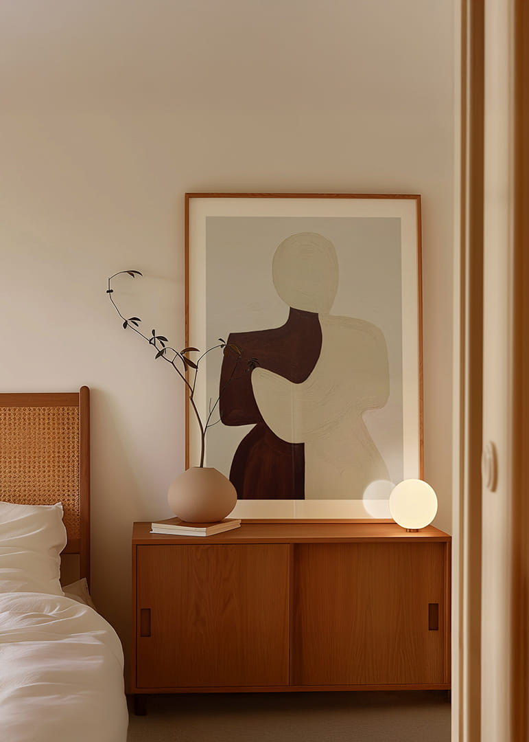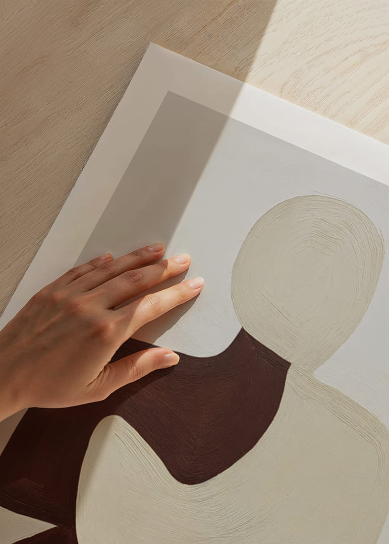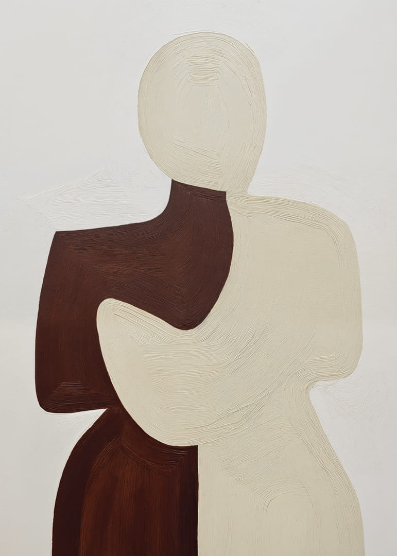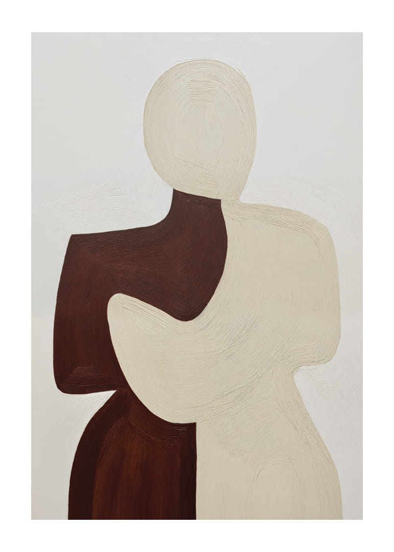 Med två sammanflätade figurer bjuder denna poster in till en upplevelse av inre frid och koppling. Kontrasten mellan de mjuka färgtonerna skapar ett subtilt men kraftfullt uttryck som fångar ögat och själen. Idealiskt för att förhöja atmosfären i både moderna och klassiska rum, ger denna poster en touch av konstnärlig elegans och balans som harmoniserar med alla inredningsstilar.