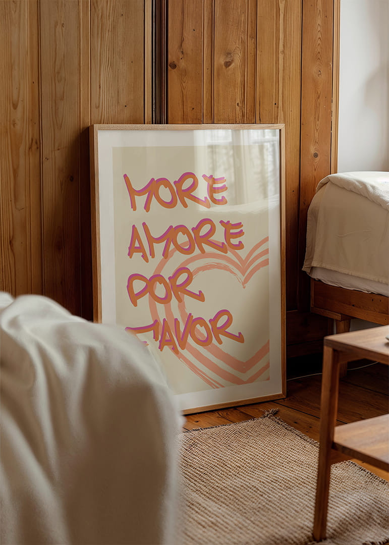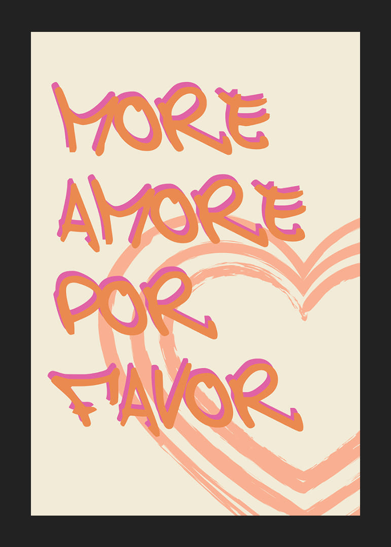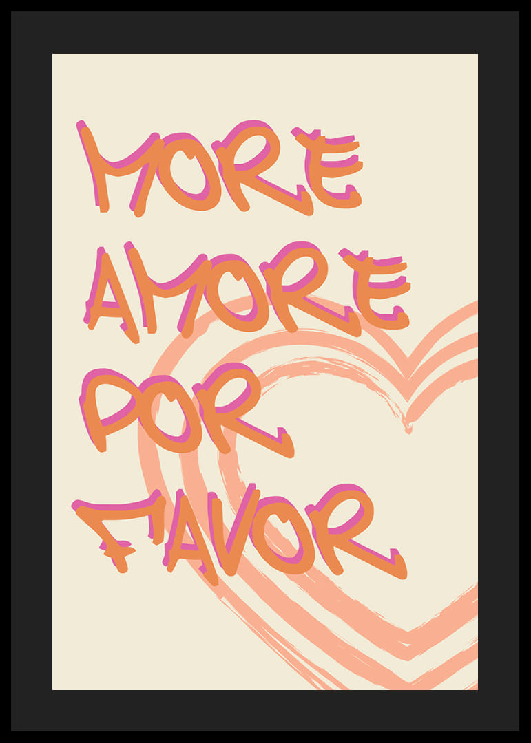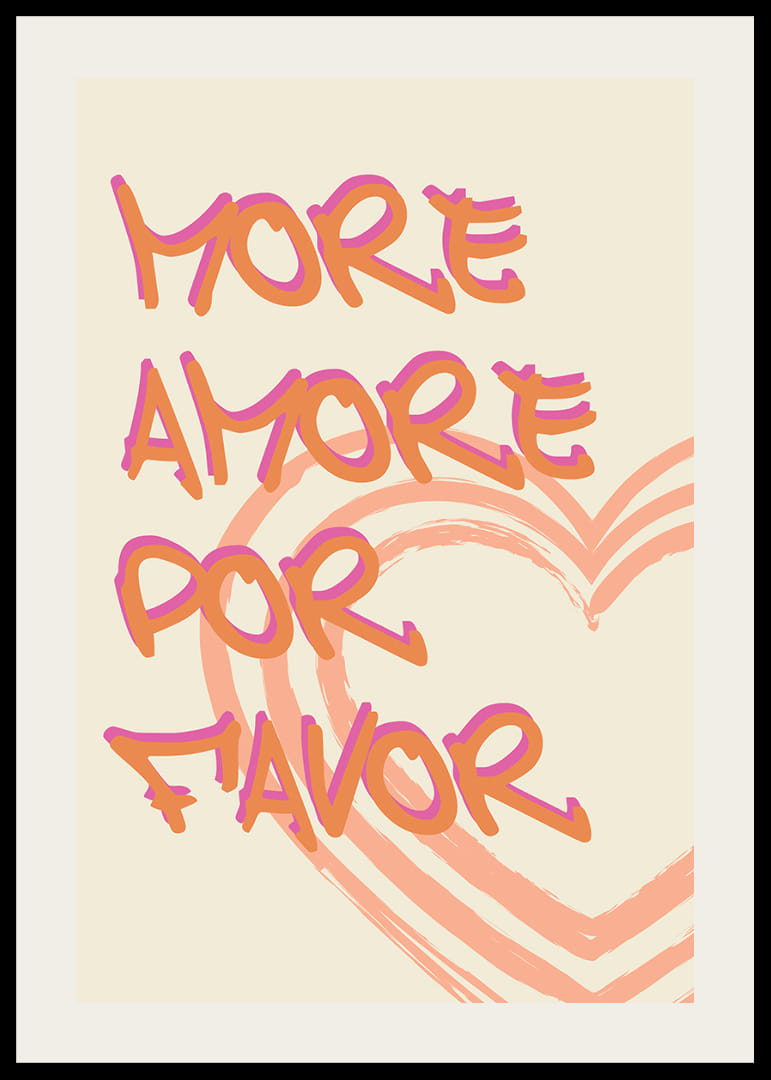 Den här postern fångar ögonen med sina vibrerande kärleksfulla budskap, där varje ord dansar över bakgrunden i djärva färger. De slingrande hjärtformerna förstärker känslan av värme och passion. En poster som utstrålar charm och sprider kärlek i ditt hem, perfekt för att skapa en inbjudande och hjärtefull atmosfär. Idealisk för alla miljöer som behöver en gnista av amor.