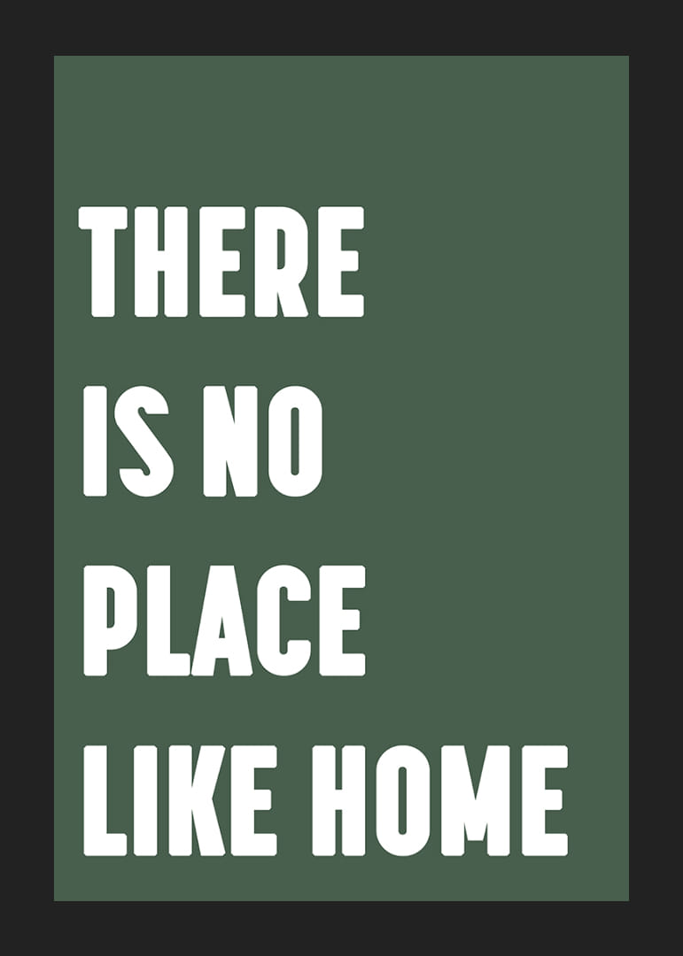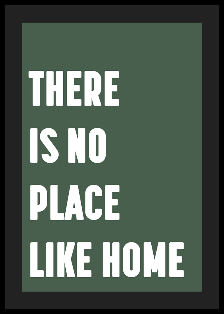 Denna poster fångar hemmets essens med sitt enkla men kraftfulla budskap, 'There is no place like home'. De stilrena bokstäverna mot den gröna bakgrunden förmedlar en varm och trygg känsla. Postern blir en påminnelse om hemmets betydelse och harmoni, och den lyfter vilket rum som helst genom att tillföra både lugn och inspiration. Ett måste för alla som älskar hemtrevnad.