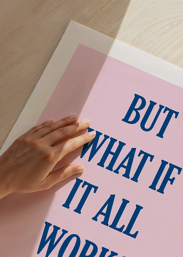 Denna poster fångar betraktarens uppmärksamhet med sitt enkla men kraftfulla budskap. Med dess rena bakgrund och framträdande text förmedlar den en känsla av hopp och framtidstro. Ordet 'MEN' inleder en reflektion som leder till positivitet och möjligheter. Häng den i ditt hem och känn hur rummet fylls med energi och motivation, en ständig påminnelse om att det bästa kan hända.