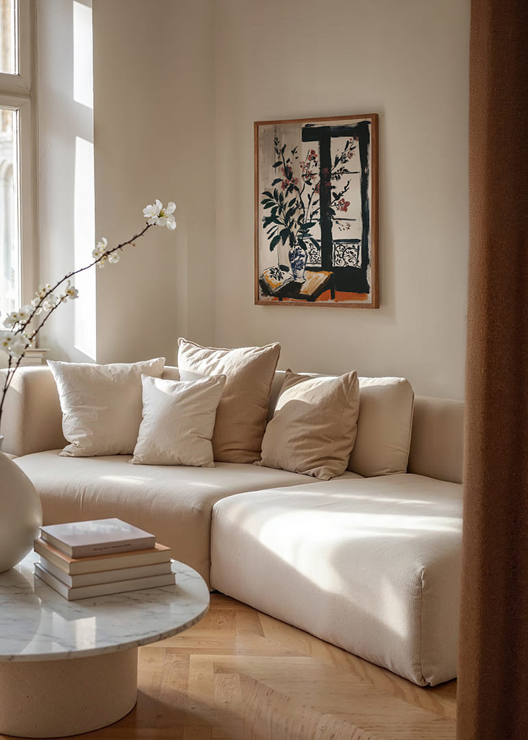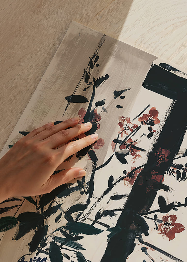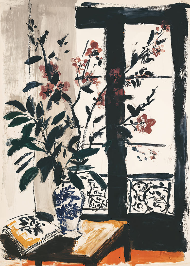Denna poster fångar ögat med sina delikata blommor som blommar mjukt mot ett gammalt fönster. Kombinationen av djärva penseldrag och subtila färger skapar en tidlös atmosfär som inbjuder till vila och reflektion. Den eleganta vasen och naturens närvaro ger ditt hem en sofistikerad touch. Denna poster är en perfekt mittpunkt som både inspirerar och lugnar, och den skänker en känsla av balans och elegans till rummet.