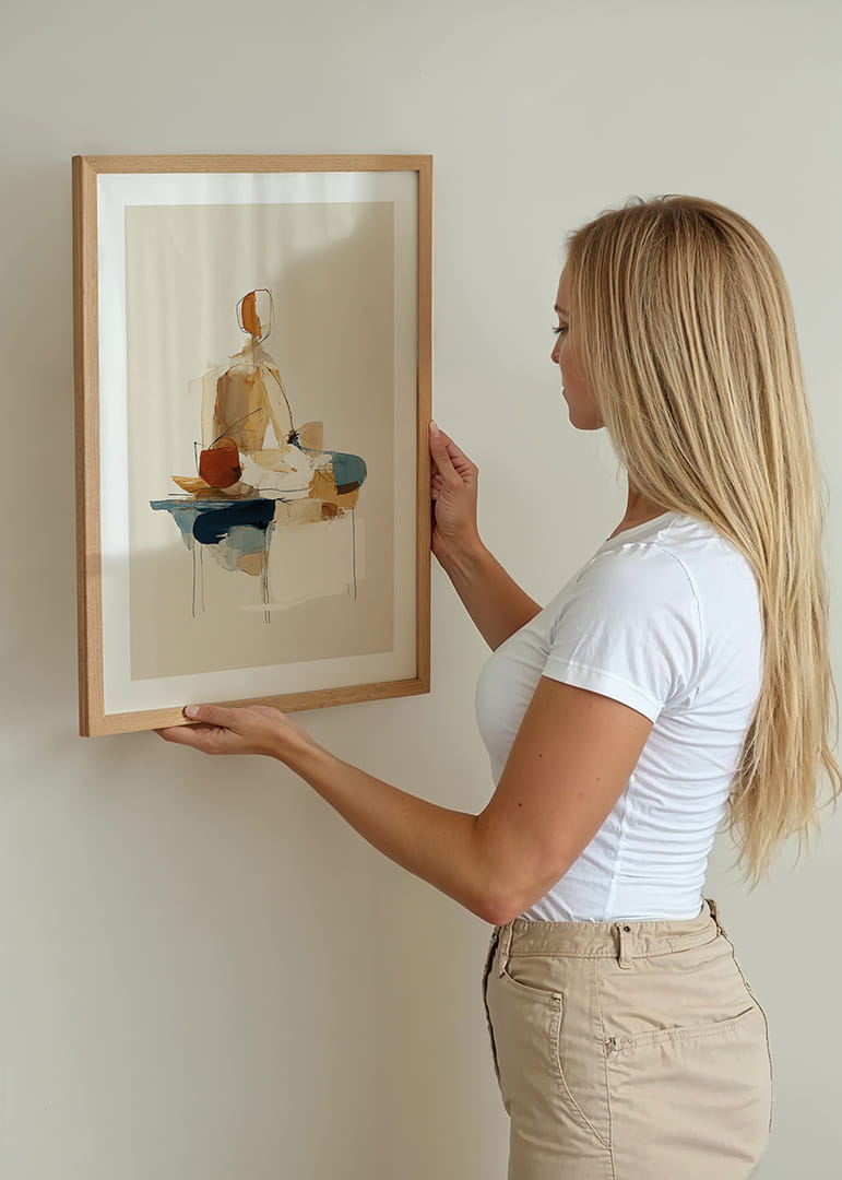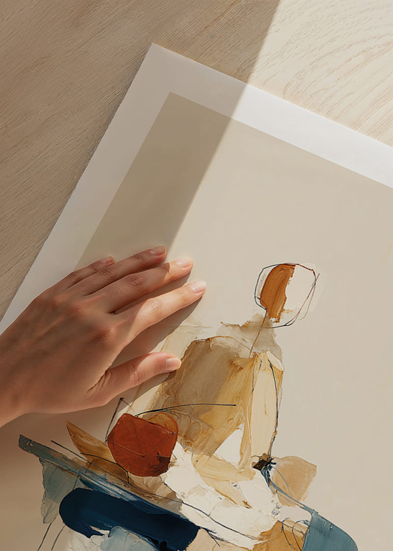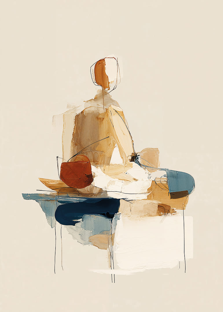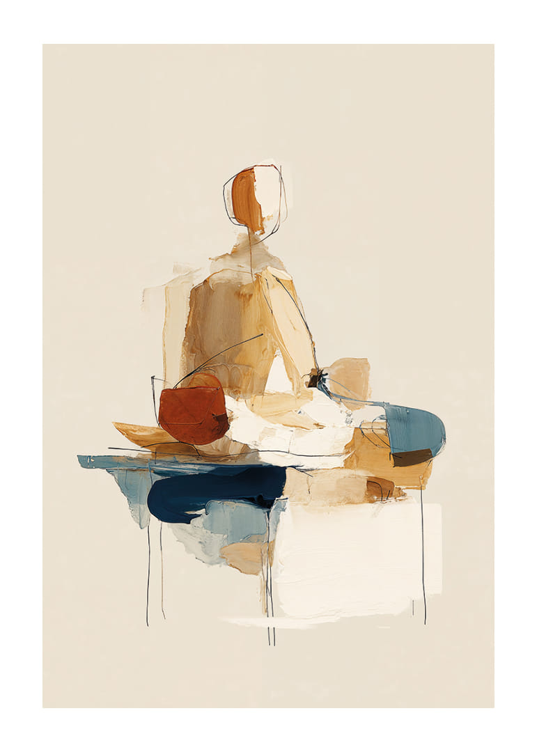 Denna poster fångar en harmonisk dans av jordnära och svala nyanser, vilket skapar en meditativ tystnad som inbjuder till introspektion. De abstrakta formerna smälter samman i en fusion av lugn och balans, vilket gör det till ett konstverk som väcker både tanke och känsla. Denna poster är perfekt för att förvandla vilket rum som helst till en fridfull oas av eftertänksamhet och estetik.