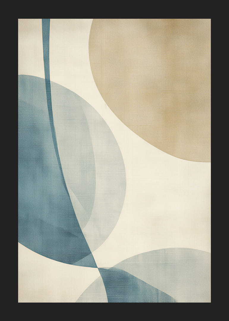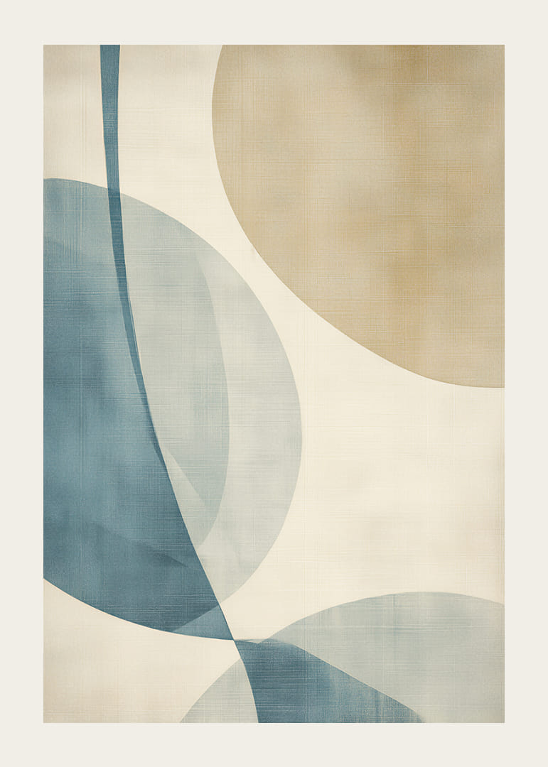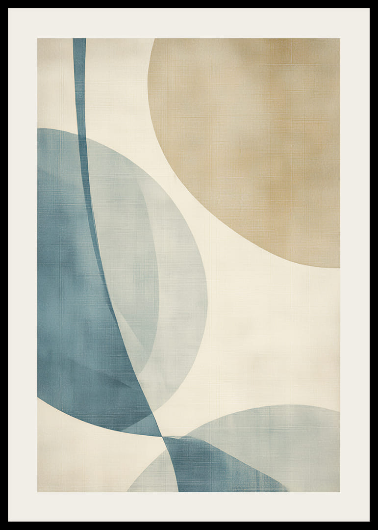 Denna poster utstrålar en känsla av stillhet genom sina mjuka, flytande linjer och harmoniska färgpalett i blått och beige. Den enkla men eleganta utformningen fångar ögat och ger en upplevelse av lugn och balans. Postern passar perfekt i ett modernt vardagsrum eller ett lugnt sovrum, där den kan lyfta atmosfären och bidra till en avkopplande stämning.