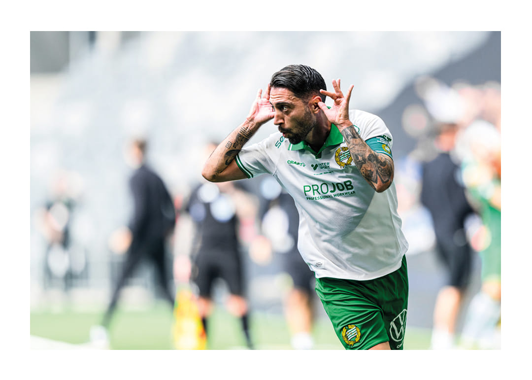 Hammarbys Nahir Besara jublar efter 0-2 under fotbollsmatchen i Allsvenskan mellan Djurgården och Hammarby den 14 september 2025 i Stockholm.