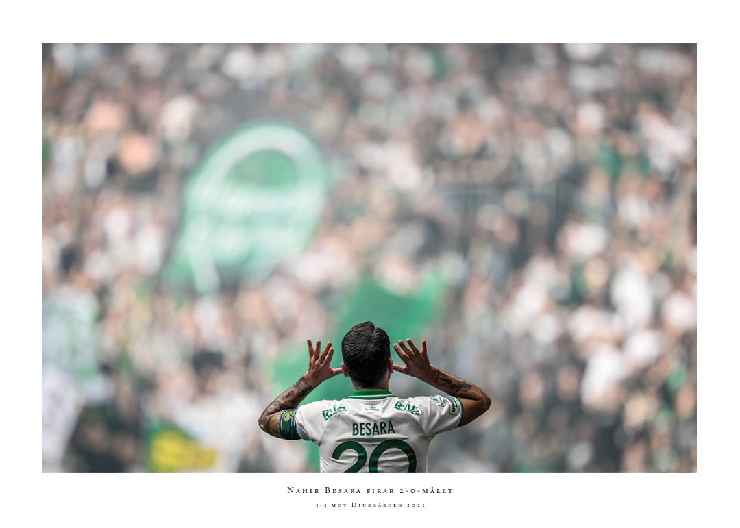 Hammarbys Nahir Besara jublar efter 0-2 under fotbollsmatchen i Allsvenskan mellan Djurgården och Hammarby den 14 september 2025 i Stockholm.