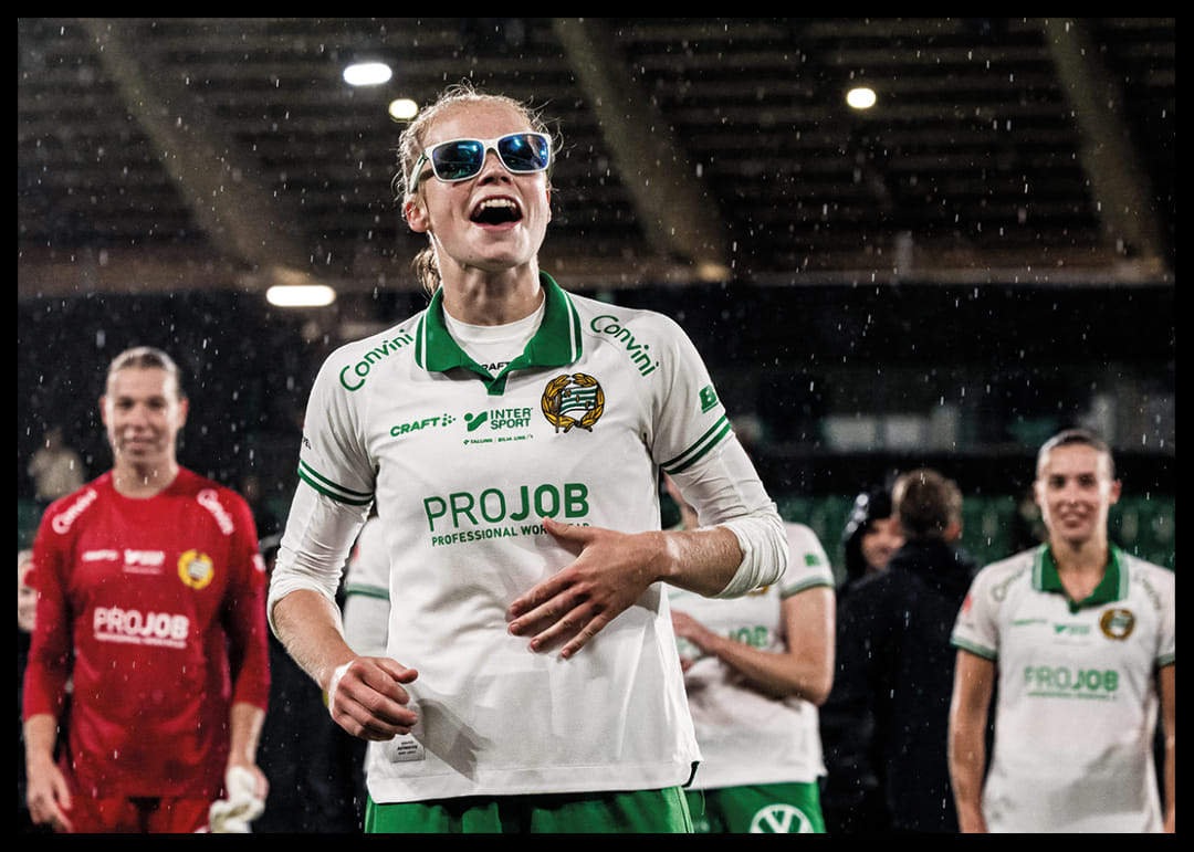 Hammarbys Julie Blakstad jublar efter fotbollsmatchen i Damallsvenskan mellan Hammarby och Kristianstad den 22 augusti 2025 i Stockholm.