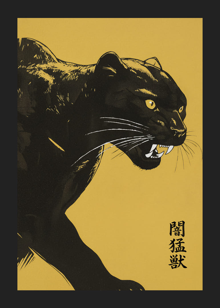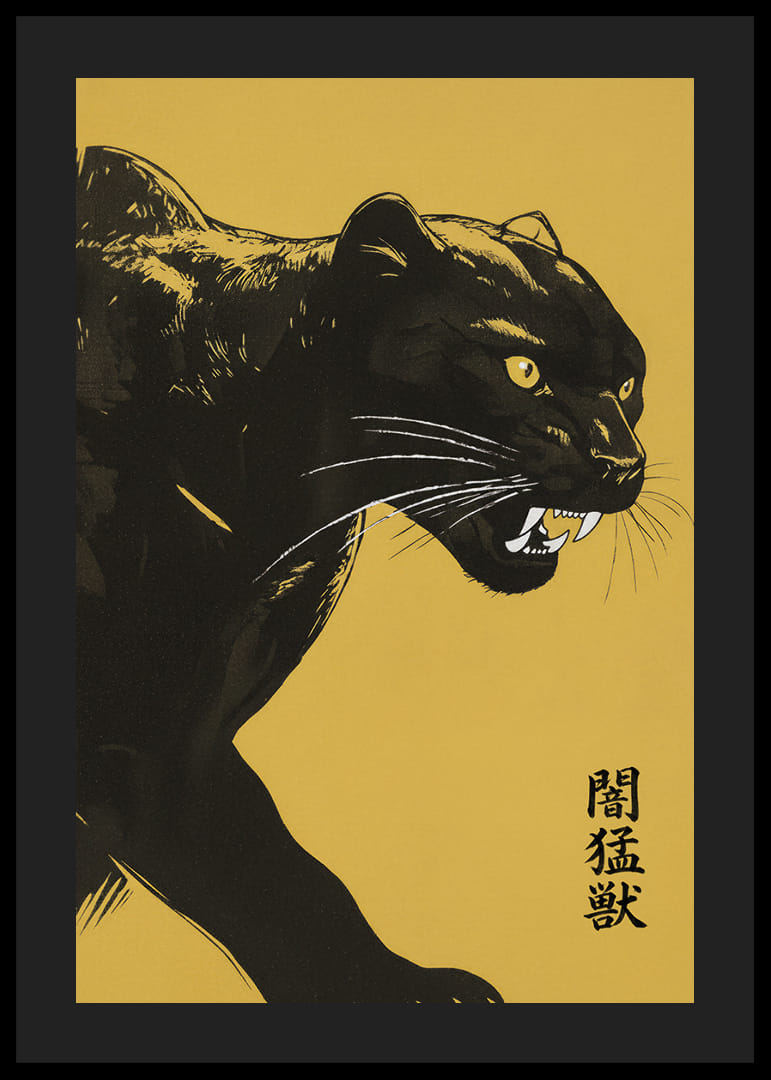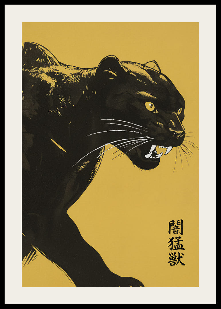 Denna poster fångar genast blicken med sin kraftfulla avbildning av en panter som rör sig i nattens skuggor. Kontrasten mellan den djupsvarte katten och den varma gula bakgrunden skapar en dynamisk och fängslande bild. Panterns intensiva blick och beslutsamma uttryck ger ett mystiskt och majestätiskt intryck. Med denna poster tillför du en känsla av styrka och sofistikation till vilket rum som helst.